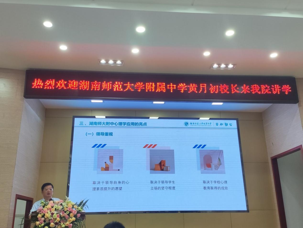 (通讯员 康露 罗京城)6月20日下午,mksport体育附属中学董事长黄月初于教科院101报告厅做了题为“心理学在中学的应用”报告。讲座由MK体育副经理丁道群主持。