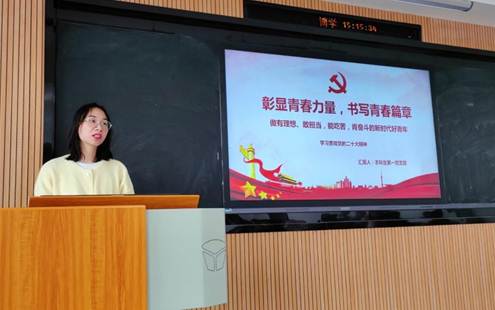 来自教育技术学研究生党支部的饶爱婷同志进行了精彩的讲解,从“走进党的二十大——科学把握党的二十大精神的核心要义“、”六个坚持——习近平新时代中国特色社会主义思想的理论精髓“以及”推进教育、科技、人才‘三位一体’——从教育出发学习 贯彻党的二十大精神“三个部分入手,详细介绍了党的二十大精神的核心所在,呼吁党员同志们要认真学习和把握二十大精神,为党和国家的未来发展贡献自己的奋斗力量。