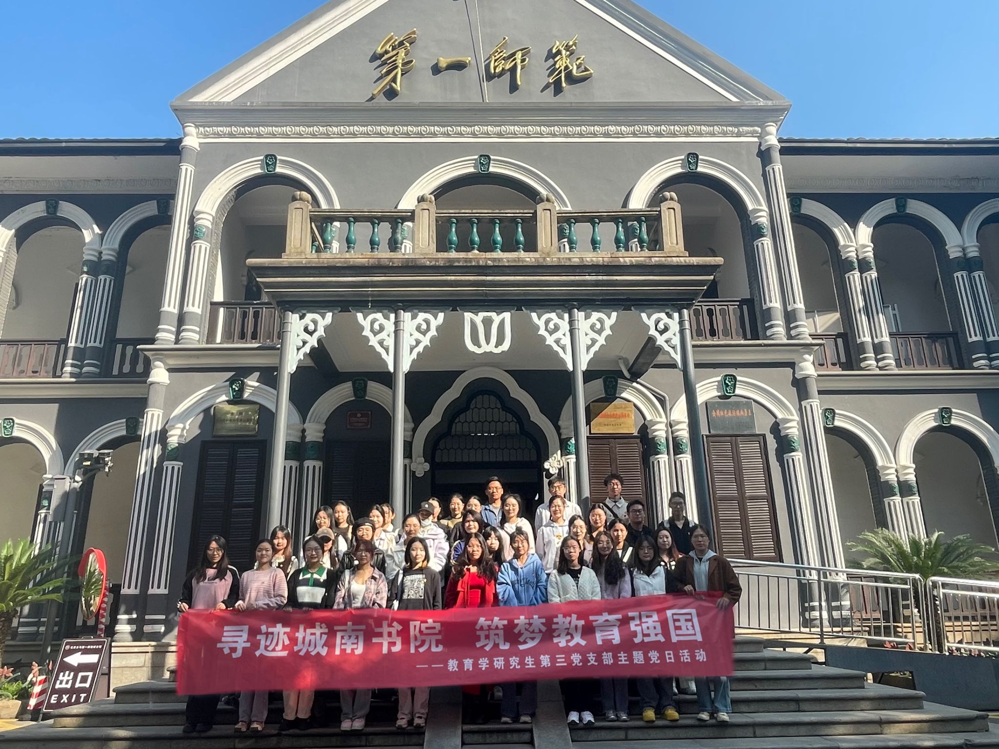 (通讯员 方月 颜梦姿)10月23日下午,公司教育学研究生第三党支部党员前往湖南第一师范公司(城南书院校区)进行参观,开展了“寻迹城南书院 筑梦教育强国”主题的党日活动。活动旨在寻访伟人足迹,感悟立志教育救国的初心,激发党员同志教育报国的奋进力量和时代担当。