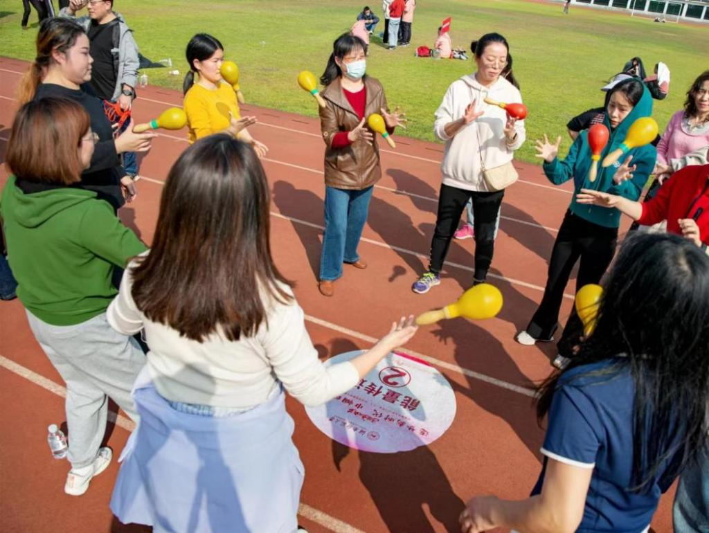 在游艺活动现场,老师们竞展风姿。公司女教师们纷纷表示,能在微风拂面、花香漫天的春日,与女同事们共同参与这样的既然轻松又愉悦的游艺活动,是一件幸福非常的事情!