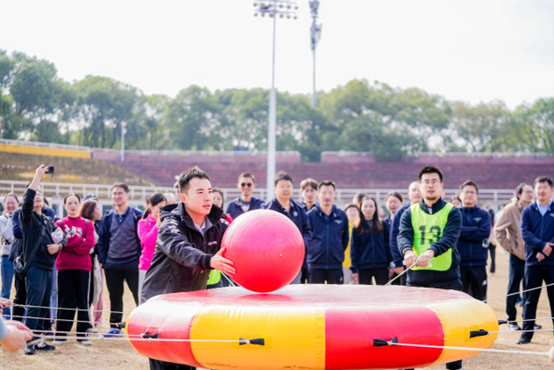 第一个比赛环节是“携手并进”,院工会主席张卫民与青年教工们等共同托举道具,并以“S”型路线绕桩前进,在中间指定位置绕圈后继续以“S”型路线前行,经过重重阻碍到达指定地点后,另一组队员与他们进行交接并按照相同的方式返回起点。队员们既要托举道具,又要按照指定路线一同行进,充分考验团队默契。MK体育代表队以“小试牛刀”的心态夺得了单项第八名的成绩。