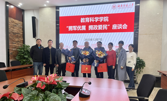 活动最后,汪植英、赵亮为退伍教师献花,与会人员合影留念。