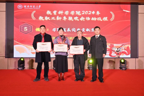 在大会表彰环节,刘铁芳向荣休教师汪植英、张传燧、燕良轼颁发“公司发展突出贡献奖”。公司党委书记鲁良等院领导分别颁发“党建管理篇”的党建贡献奖、工会工作贡献奖,“公司产品篇”的教学贡献奖、人才培养工作贡献奖、师范专业认证贡献奖,“学术科研篇”的科研贡献奖、团队建设贡献奖等七项表彰。