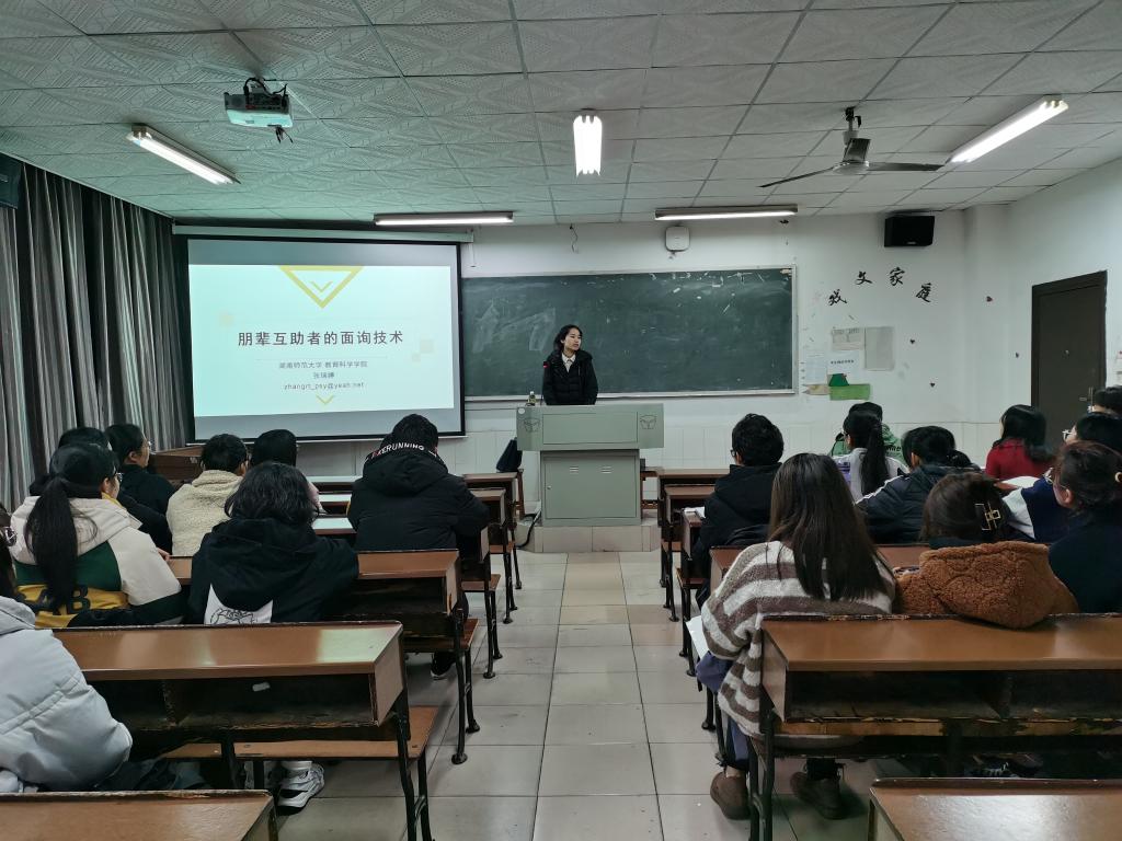 (通讯员 何芳 喻帅 王雪)11月26日晚,MK体育学工办于张公岭校区综合楼703教室举行2020级朋辈心理辅导员培训会第二讲。此次会议主讲人为心理学系讲师张瑞婷老师,教科院2020级年级干部及全体朋辈心理辅导员到场参加。
