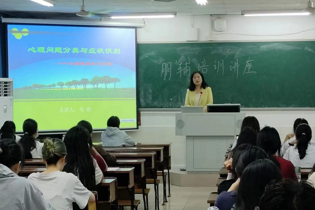 马欣以近期校园心理健康问题真实事件为例,提醒同学们要注意心理问题、正视心理变化、释放心理压力。此外,马欣从心理问题的症状与治疗切入,详述了心理问题的分类、心理健康水平的十项标准等专业心理知识,加深了同学们对心理健康知识与心理问题诊断标准的理解。她表达了对朋辅们的殷切期望,希望他们能够加强对团体辅导的专业知识学习,在今后的学习生活中做到真学、真懂、真用,切实帮助身边的同学实现助人与自助。