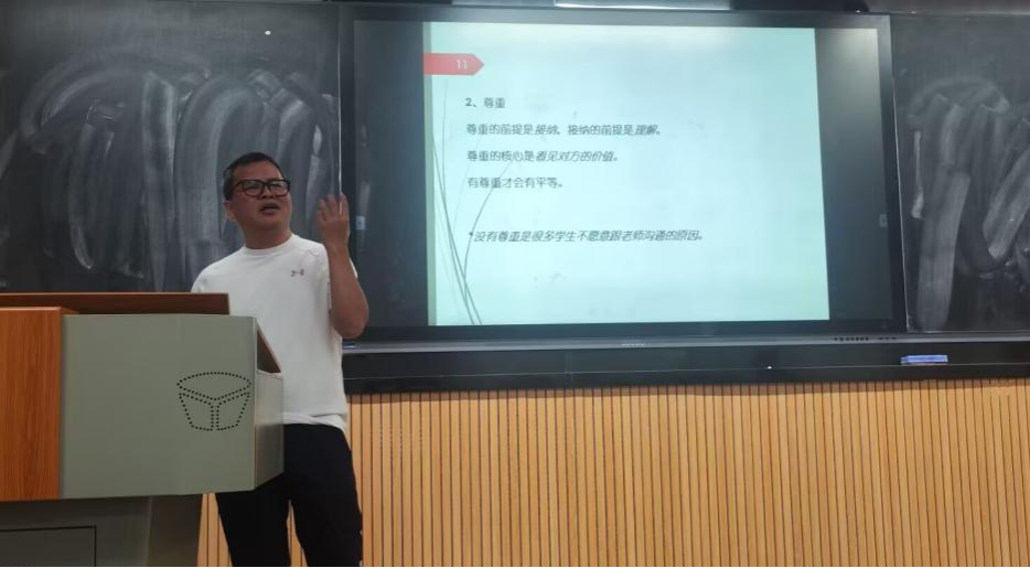 王玉龙针对人际沟通的前提、目的与技巧三个方面进行展培训,他用生动而具体的沟通案例向大家说明了人际沟通的重点与技巧,并强调了尊重、共情在沟通中的重要性。王玉龙指出,作为朋辈心理辅导员,应当掌握人际交往的沟通技巧,并善于将这些技巧运用在日常的朋辅工作中,帮助同学们建立和维护良好的人际关系,促进相互间的理解。