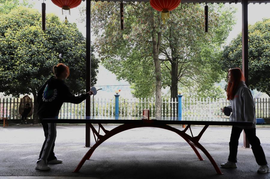 到达目的地后,同学们前往农庄的户外营地及内部场馆进行自由活动,乒乓球、桌球、健身器材玩得不亦乐乎。