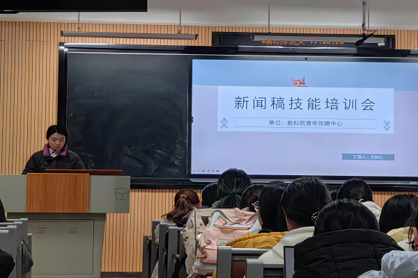 王如心将培训内容分为:新闻稿是什么、新闻稿怎么写、新闻稿投稿流程及注意事项。她从新闻稿的定义、六要素、性质、字数限制四个方面出发,阐述了新闻稿是什么,通过对比不同新闻稿件,将常见的问题进行细致分析,进一步突出撰写新闻稿的要点。她还以流程图的形式清晰地展示了“三审三校”的投稿流程,明确了校内各网站的新闻投稿要求,她重点说明了全景拍照和特写拍照的要求,提醒大家在拍摄时要找好角度,在不影响会议进行的前提下落落大方地完成新闻图片拍摄。