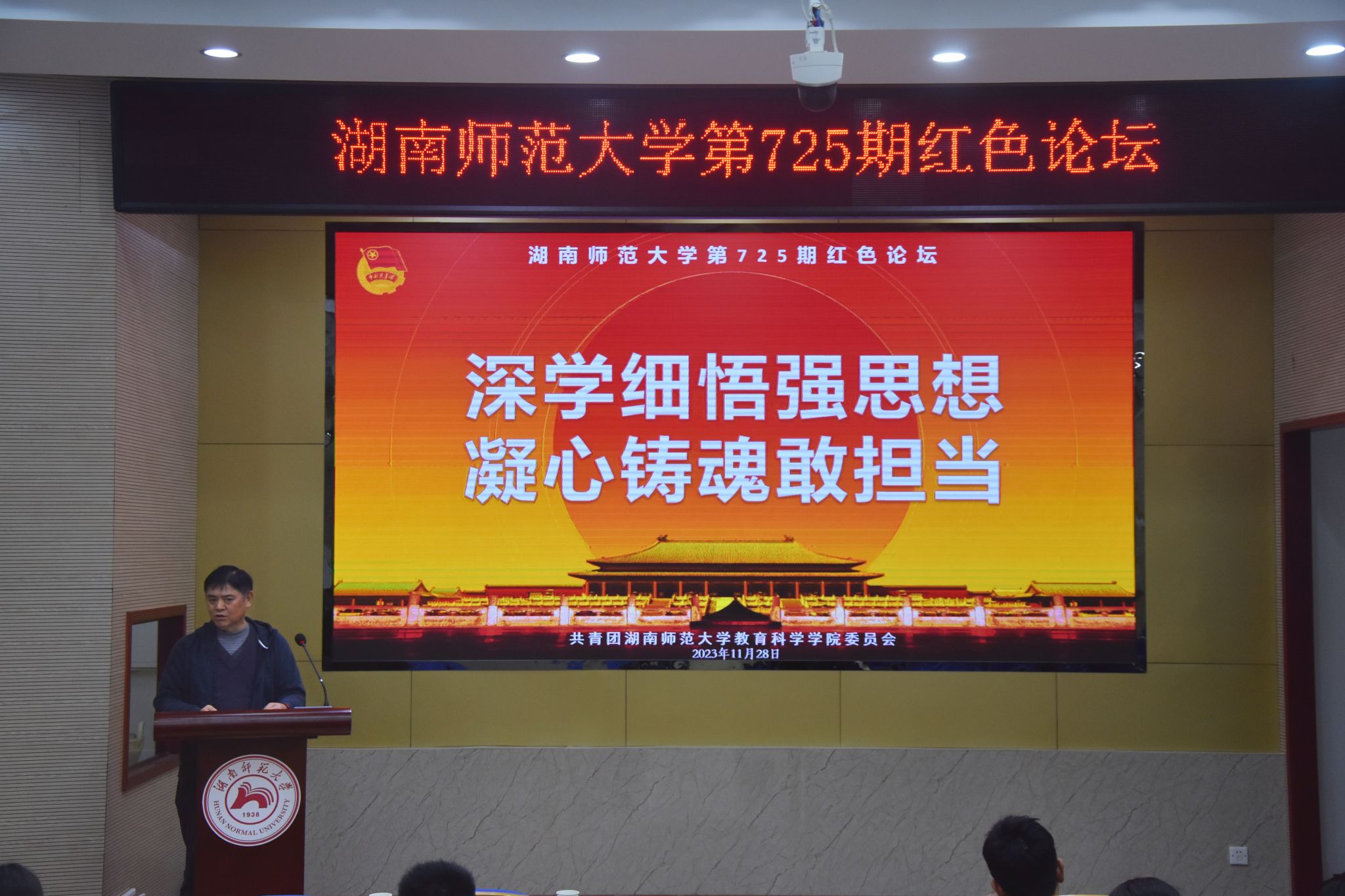 (通讯员 贺佳蓓 龙思思)11月28日晚,MK体育团委在公司101报告厅开展以“深学细悟强思想 凝心铸魂敢担当“为主题的mksport体育第725期红色论坛。教科公司党委副书记欧阳文芳、教育学系退休教师张传燧教授、院团委书记谭梦、学工办庞瑞宇、丁文珺作为嘉宾参加此次活动。