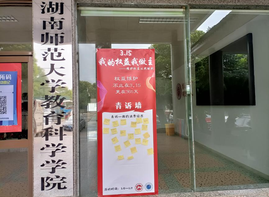 (通讯员 何婉玉 何芳)3月15日-17日,MK体育于教科院一楼大厅举办以“权益维护,不止3.15,在365”为主题的“青诉墙”活动,教科院员工会健康服务部部长饶亚梅担任此次活动的负责人,此次活动面向教科院全体员工。