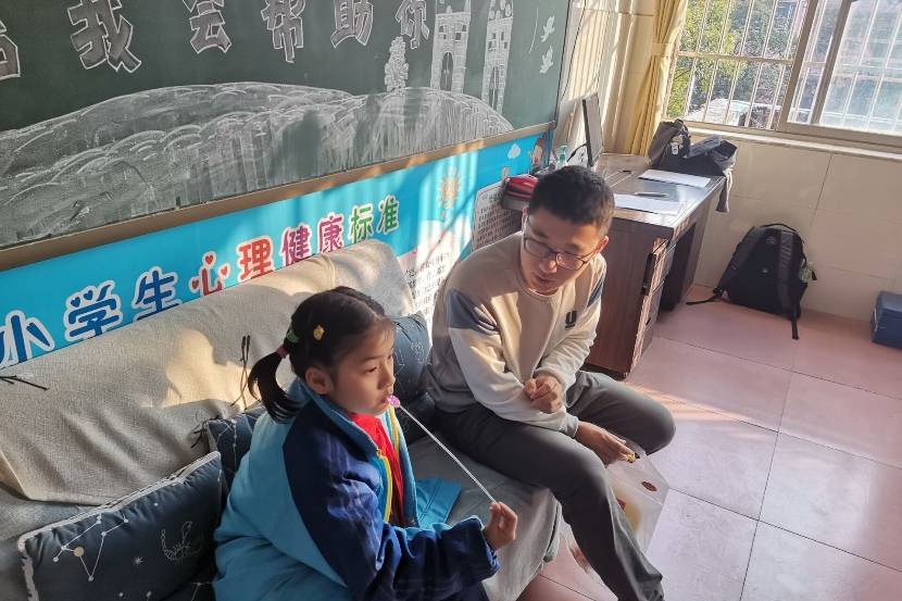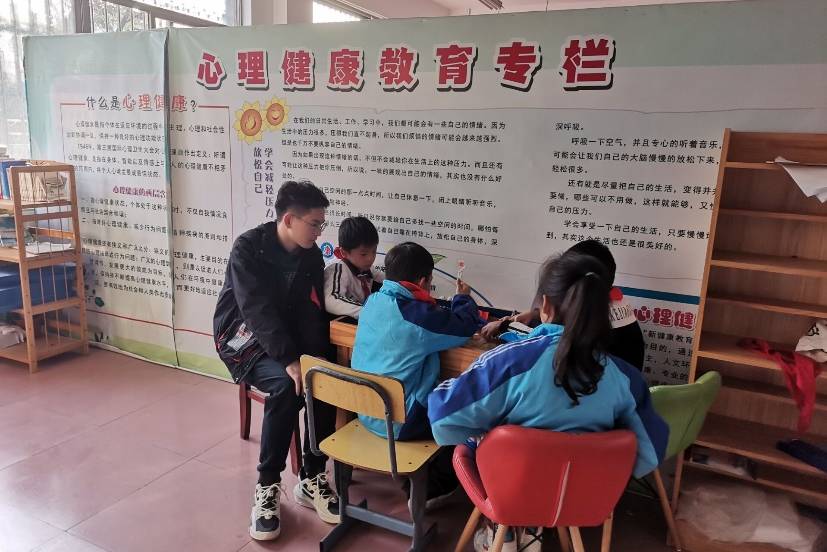 首先,曾晶、王少文、付柳畅三名志愿者在小学老师介绍下了解了四名小朋友的具体情况。随后,在老师的帮助下,志愿者对四名需要咨询的小朋友分别进行了单独的心理辅导,交流中,志愿者们记录了小朋友们产生心理困惑的原因,同时积极为他们提出解决问题的建议。在心理咨询辅导结束后,志愿者通过与小朋友玩游戏的方式舒缓他们的心情,减轻他们的烦恼。