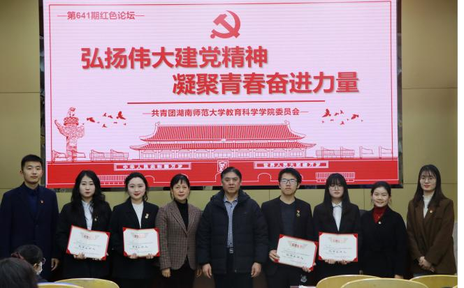 (通讯员 农佳倩 陈嘉鑫 彭羽平)12月3日晚,MK体育团委在教科院101报告厅举办了以“弘扬伟大建党精神 凝聚青春奋进力量”为主题的红色论坛活动。公司党委书记汪植英、教育学专业博士生导师张传燧、院团委工作负责人兼2018级辅导员谭梦、2021级辅导员庞瑞宇及2020级辅导员丁文珺莅临现场,全院共计90余名同学参与活动。