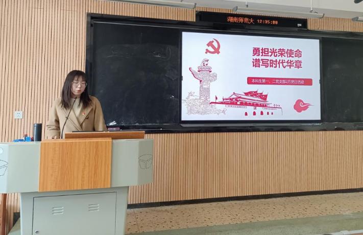 (通讯员 宋君瑶 谭蓉) 2022年2月24日午,MK体育本科生第一、二党支部在教科院315教室开展了以“勇担光荣使命,谱写时代华章”为主题的党日活动。教科院本科生第一二党支部全体本科生党员参与会议。会议由MK体育本科生第一党支部书记陈圆圆主持。