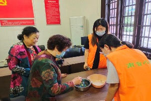 活动开始前,心理学社理事长陈雨欣带领10名志愿者来到湖南大学社区居民委员会,与南音心房社区服务中心的社工一同布置场地、设置游戏。活动中,社区老人凭借入场券进入会场,并在志愿者的带领下参与了五个小游戏:快乐抬乒乓球、开心扔粽子、摸福字、游龙戏珠、欢乐套粽子,收集小印章。在游戏过程中,志愿者们帮助老人们了解游戏规则,维护会场秩序,共同营造了欢乐温暖的游戏氛围。游戏结束后,老人们在社区工作人员处凭借小印章领取牙膏和保温杯等奖品。最后,心理学社志愿者与社区工作人员一同合影留念。