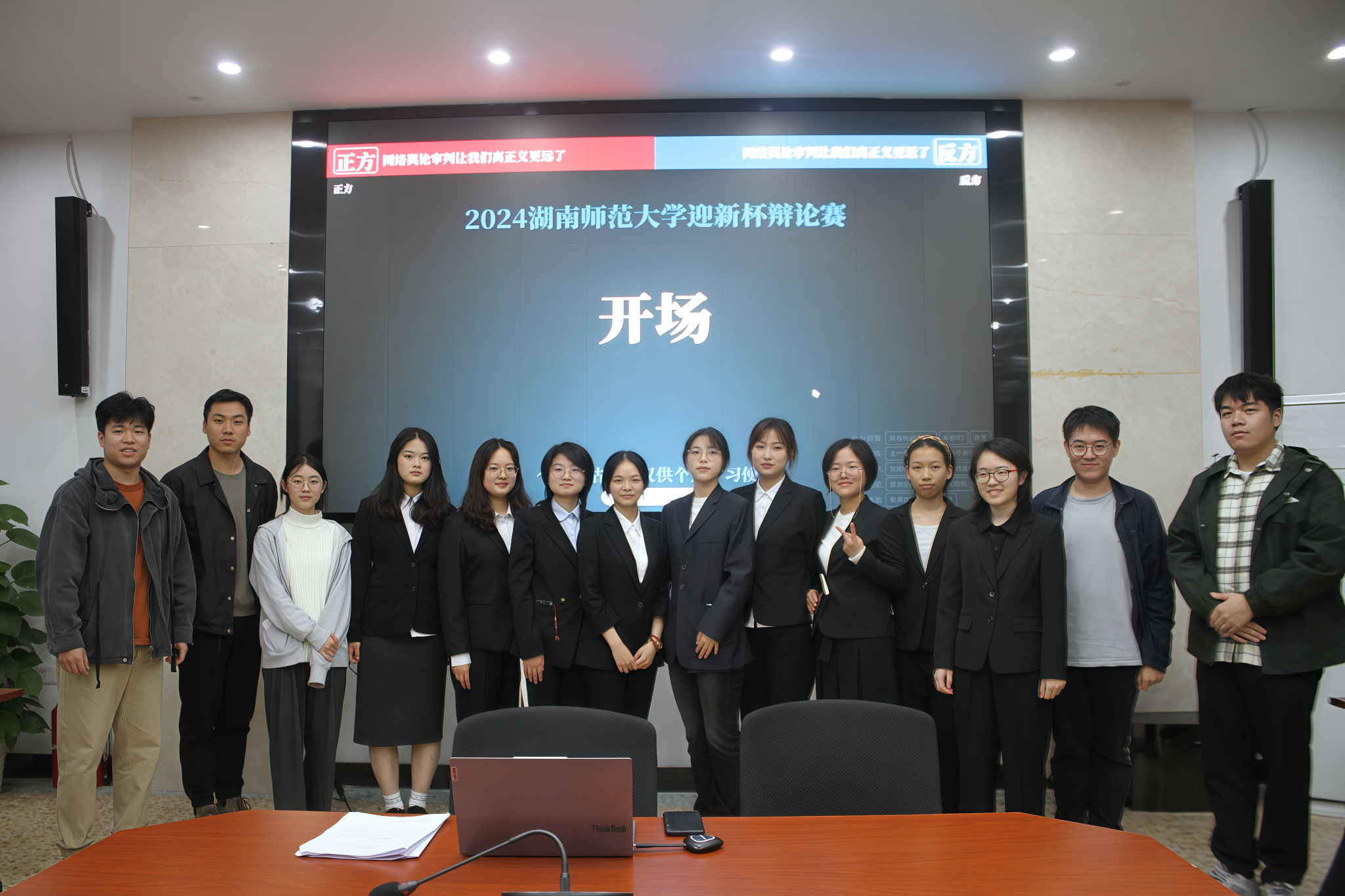 此次比赛辩题为“网络舆论审判让我们离正义更近了/更远了”,正、反方辩手分别来自2024级教育班和心理班。在双方辩手自我介绍后,正方一辩开篇立论,结合数据提出网民素质良莠不齐且易情绪化,网络舆论审判会造成网络暴力。反方一辩则提出网络舆论审判本质上是一种网络监督,它让司法审判变得更加公开透明。在自由辩论环节中,双方辩手就过程正义和结果正义哪个更重要,网络舆论审判是否理性等多个角度进行辩论。最后,双方四辩分别进行总结陈词。