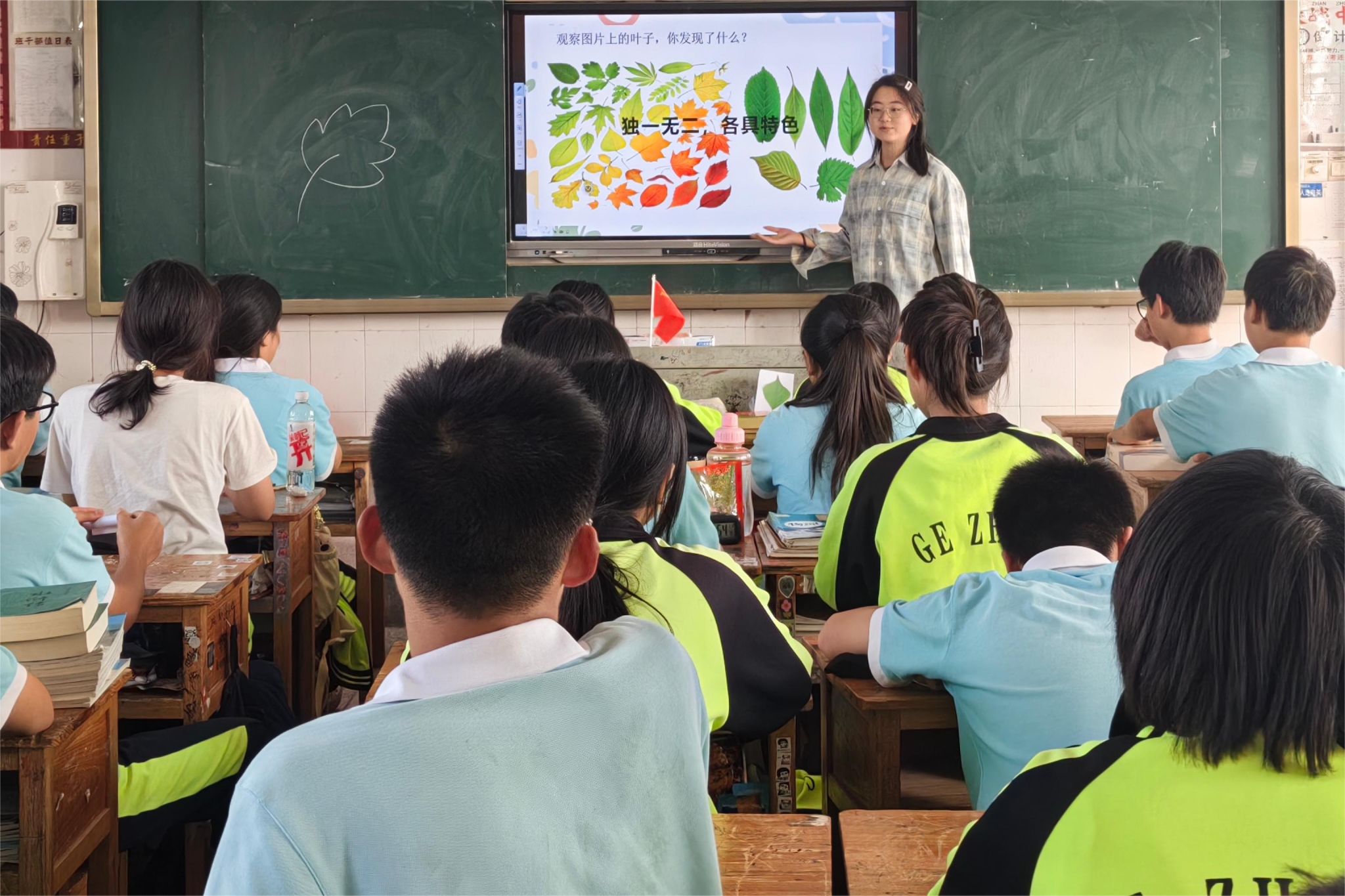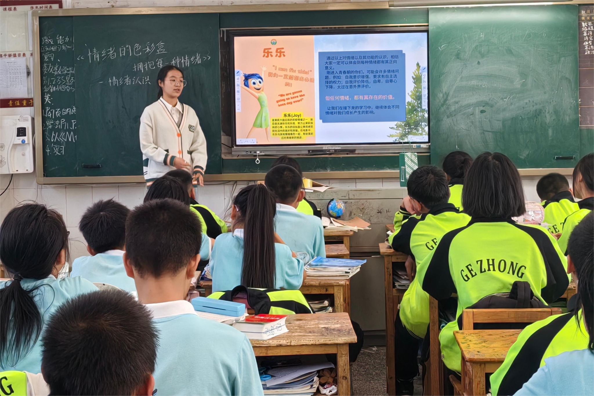 8名志愿者到达格塘中学后,由粟蒙凯介绍公司学情并对授课纪律问题作出强调。在“我是谁”课堂上,王梦宾以游戏互动的方式激励同学们主动认识自我。随后,杨嘉欣围绕“世界上没有两片一模一样的树叶”主题展开课堂,启发同学们欣赏独一无二的自己。黄佳怡抛出“你想活出怎样的人生”的问题,组织同学们进行“人生拍卖会”,鼓励同学们笑对人生百态。罗倢雯谈及校园早恋,通过案例分析告诫同学们科学应对青春期早期的朦胧情感。观看完一段轻松有趣的动画片之后,喻子涵向同学们介绍了五彩斑斓的情绪,引导同学们做自己情绪的主人。