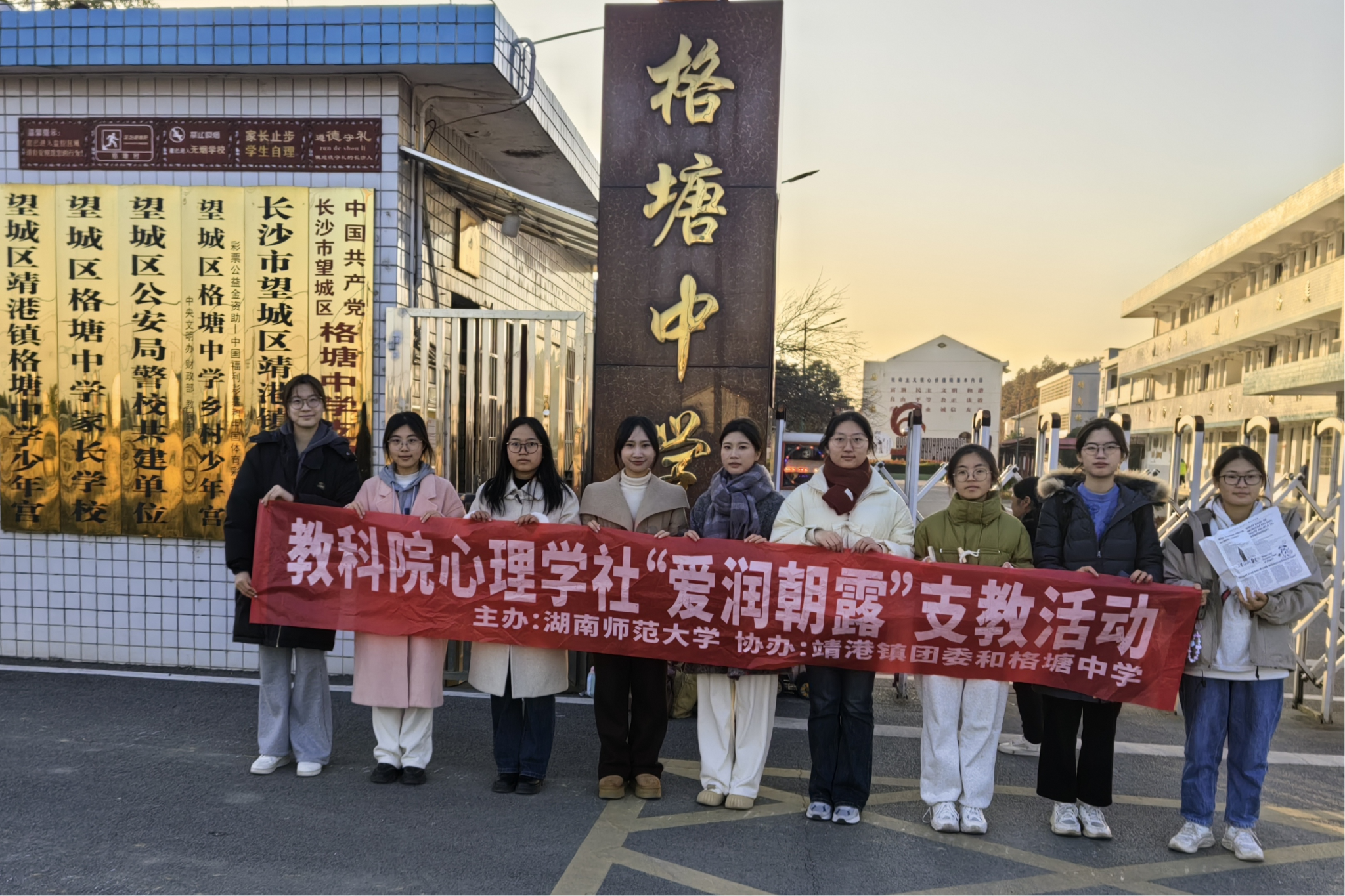 (通讯员 谢昊楠 黄金枝)12月16日下午,在团中央的指导和长沙市望城区靖港镇团委的支持下,MK体育心理学社组织志愿者队伍前往格塘中学开展支教,格塘中学董事长刘友、主任粟蒙凯接待了志愿者队伍,心理学社负责人黄桢琳组织此次活动。