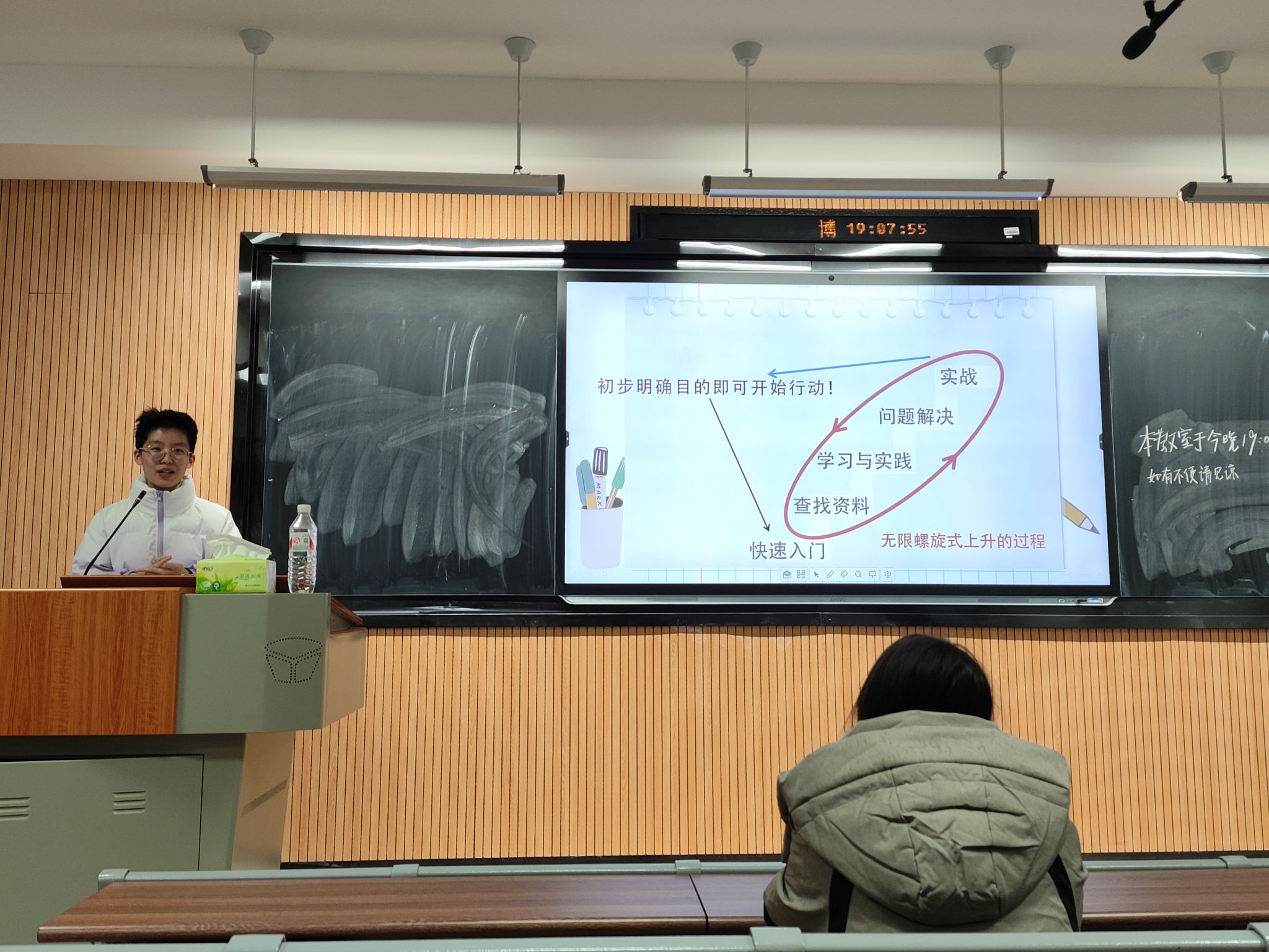 本次讲堂以“同学们自学编程的方式”为主题,围绕“自学工作流”“自学方法论”“问题与解决办法”“实战与产出”四个板块展开。刘泊宁分享了自己自学编程的经历,指出编程学习中的迷茫和混乱是常态,明确目标后应立即行动。她还介绍了快速入门的诀窍:选择一本优质资料书并结合实践操作。在“问题与解决办法”板块,她鼓励同学们在技术层面,积极请教;在心态方面,提醒大家保持自信,不要妄自菲薄。在“实战与产出”环节,她建议同学们善于发现生活中的小问题,并用编程技术加以解决。