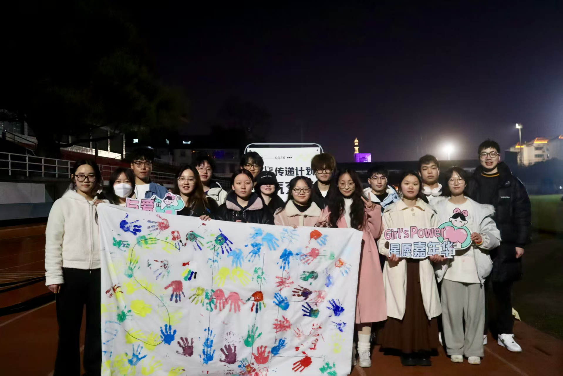 在七院员工会分工合作、协调筹备下,本次活动组建了“韵律派对”、“传递计划”、“星愿嘉年华”三大特色站点。晚上6点,“韵律派对”随舞活动在二里半田径场拉开帷幕,同学们随着节奏舞动,释放青春活力,在轻松愉悦的氛围中收获了满满的欢乐。与此同时,“传递计划”跳蚤市场活动也如火如荼地进行。闲置物品、书画作品和手工艺品等吸引了众多同学驻足挑选。“星愿嘉年华”活动中,同学们交换自己的手写祝福气球,将手印留在“她”力量主题的巨型展板上,最终汇聚成充满力量感的“She”图案。