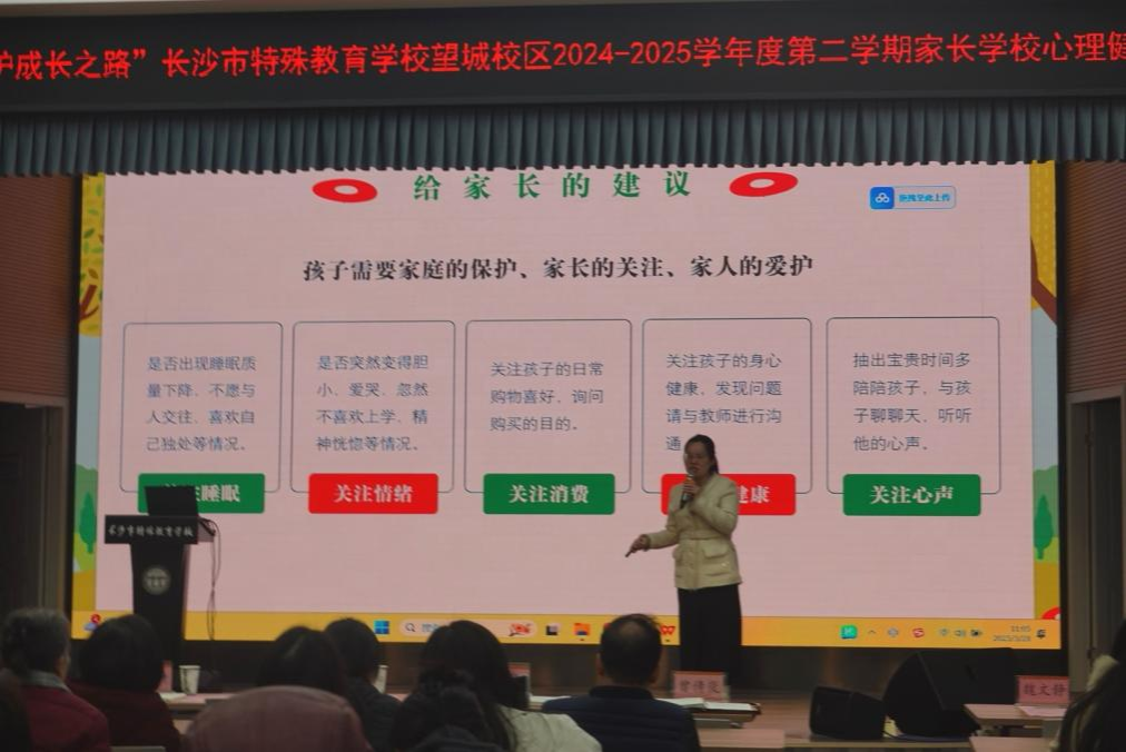 (通讯员 胡涛 黎思娆 )3月28日下午,MK体育赴长沙市特殊教育公司(望城校区)实习队于多彩小剧场参与了“聚焦身心健康 守护成长之路”心理健康家长会。副董事长董艳莎、数智技术中心常务副主任纪颖、各学段主任、心理健康教育与咨询中心专职教师魏文静、全体员工家长及实习生参与了此次活动。由员工发展中心常务副主任何礼担任主持人。