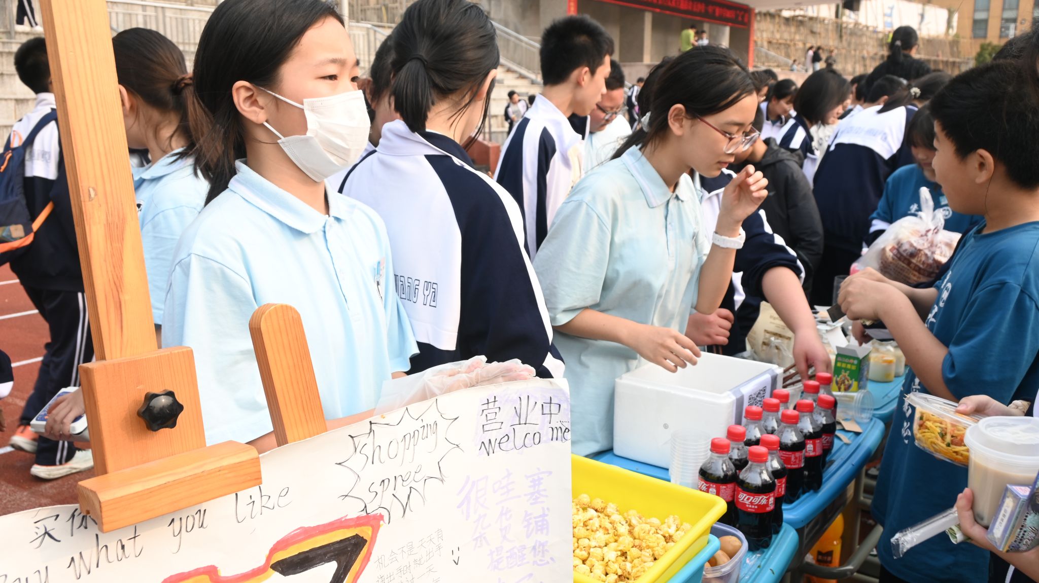 此次义卖活动形式涵盖手工艺品销售、创意游戏、特色美食品尝等,员工们充分利用课余时间精心准备,在义卖中展现了超群的组织能力和创新意识。活动当天,每个班级精心布置摊位,以别出心裁的方式吸引师生目光。从自制的小饰品、手工玩偶,到创意十足的游戏摊点,再到琳琅满目的手作美食,各式商品和互动纷纷亮相。同学们通过特色产品和别致的包装设计,展现出不凡的创意能力。有的班级制作了一批精美的布艺玩偶,吸引了大批家长和员工纷纷掏钱包购入;有的班级则是设置了“套圈赢奖品”等创意游戏摊位,简单又有趣的互动一时间人气爆棚。此外,热爱表演的员工也自发加入活动,活力四射的街舞表演让义卖现场氛围愈加欢快。