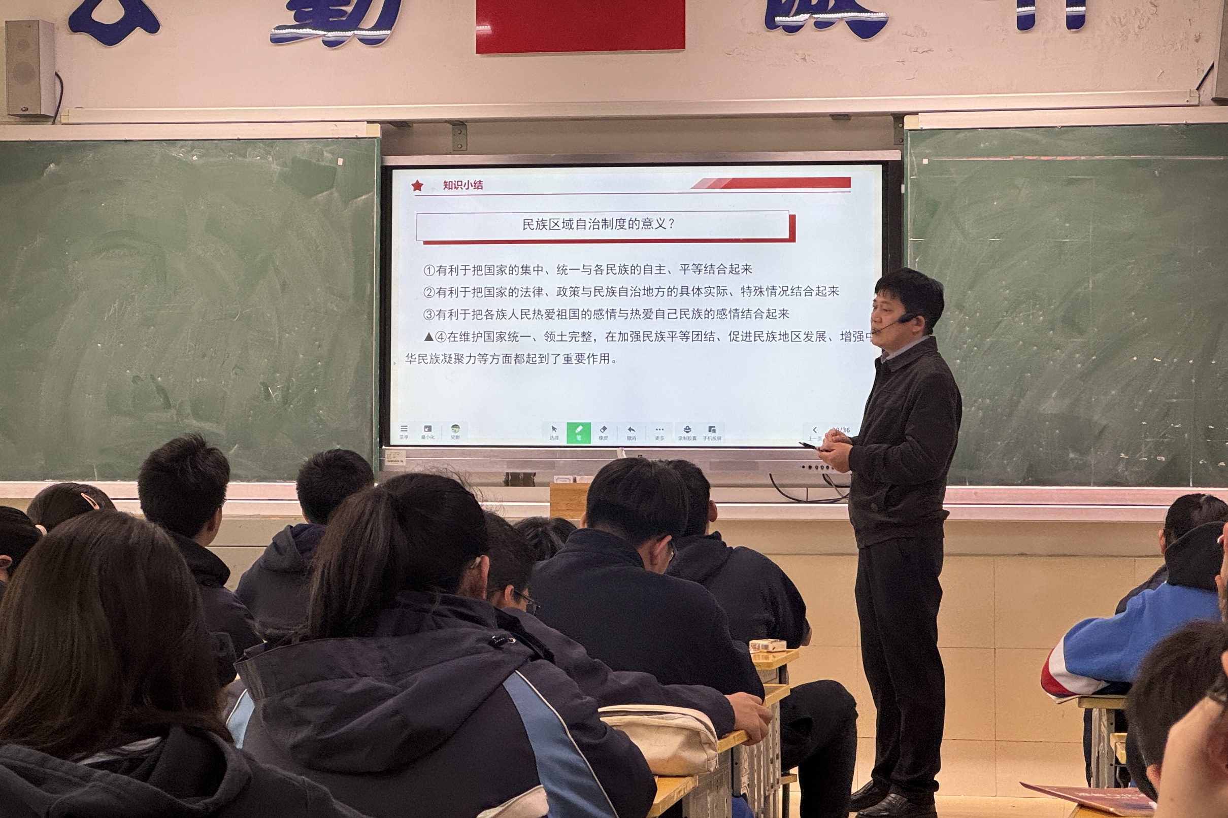课堂中,吴影围绕中国共产党领导的多党合作和政治协商制度、民族区域自治制度、基层群众自治制度三大基本政治制度,系统讲解了其形成背景、内容、地位及意义,并结合时政新闻材料和典型生活案例,加深员工们对我国政治制度的理解,增强其制度自信。授课尾声,吴影以知识导图形式呈现本课重难点,实现知识体系的系统化建构。随后,实习队员从教学设计、课堂节奏、师生互动等角度进行点评。大家一致认为,课程具有内容充实、重难点突出、逻辑清晰等亮点。同时,实习队员针对课堂节奏快、师生互动少等问题提出优化建议,并就“议题式教学法”、“教育数字化资源整合”等前沿教改方向展开深入探讨。