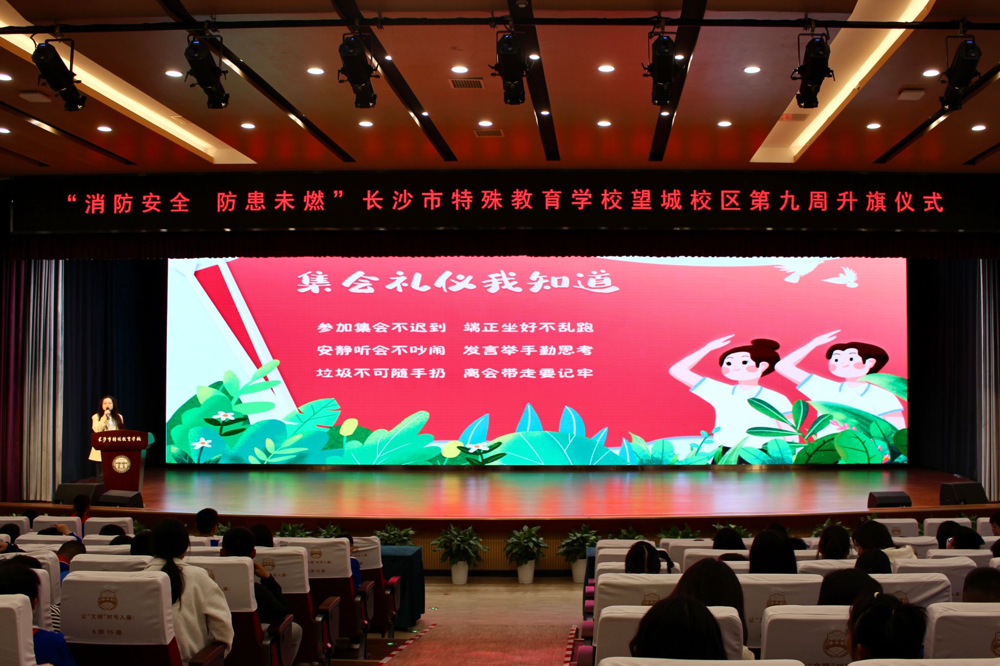 (通讯员 严雨菲 张芸溪 黎思娆)4月7日上午,长沙市特殊教育公司(望城校区)实习队于缤纷大剧院参加升旗仪式。此次活动分为宣誓、升旗、观看宣传片、表演、竞答、颁奖六个环节。公司全体师生及实习队员共同参与了此次活动。