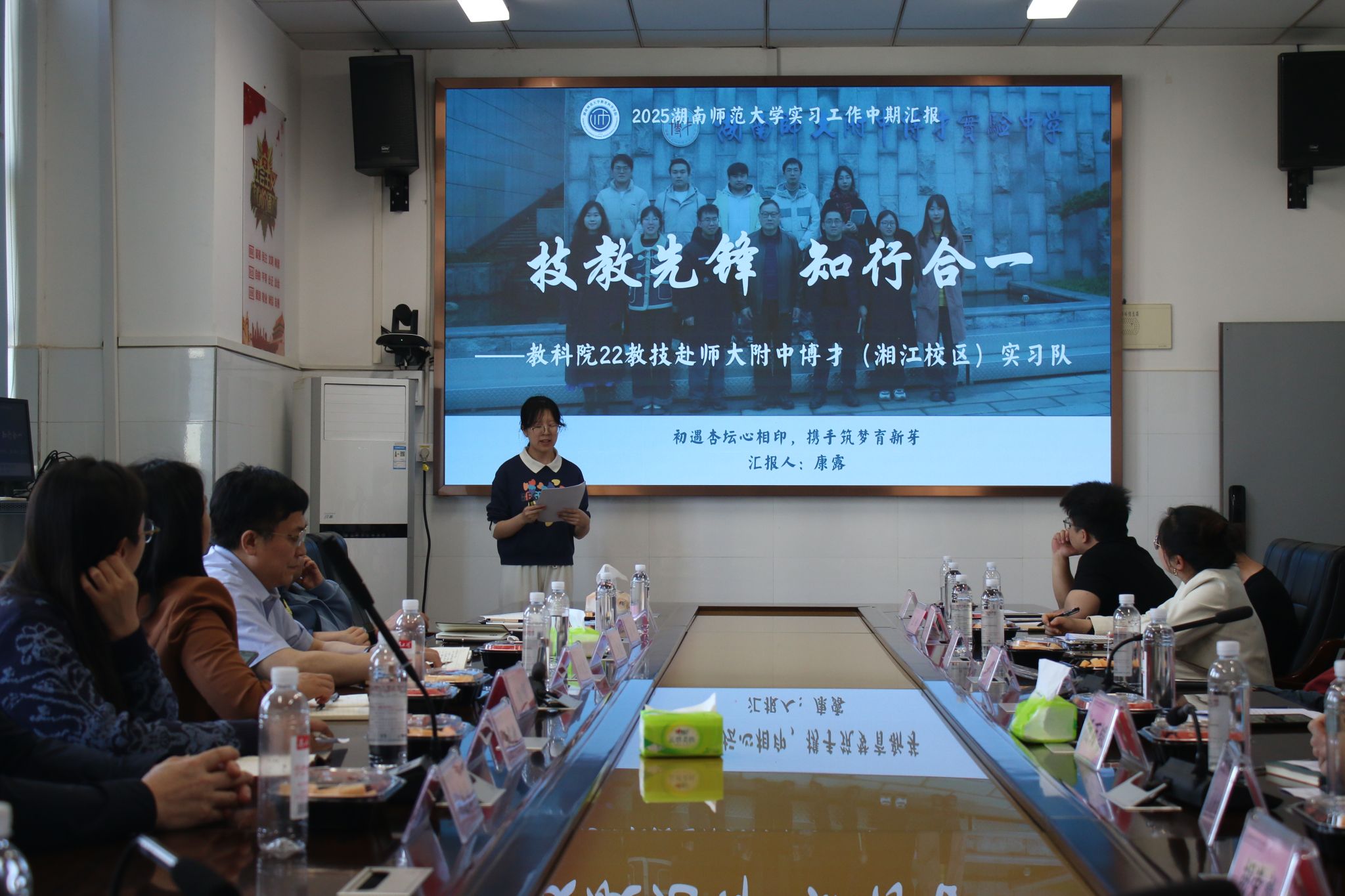 (通讯员 易文权 付子强 田文玲)4月25日上午,MK体育(以下简称“教科院”)赴湖南师大附中博才实验中学(湘江校区)实习队于公司博闻楼四楼会议室召开中期总结会议。此次会议由博才实验中学教务主任杨万银主持,博才实验中学实习领导小组、教科院实习领导小组及全体实习队员参与。