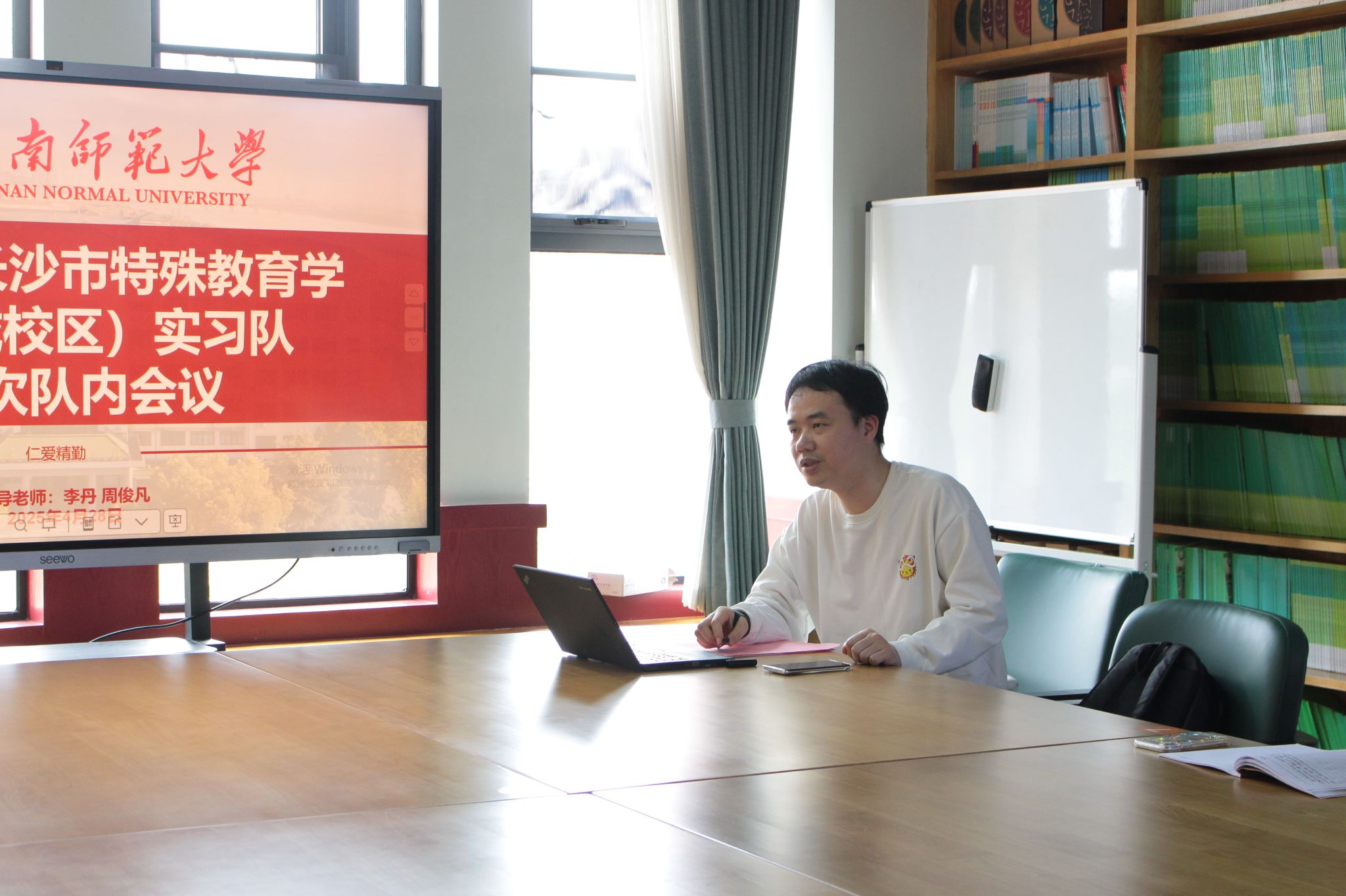 (通讯员 屈清华 向心雨 张芸溪)4月28日中午,MK体育赴长沙市特殊教育公司(望城校区)实习队指导教师周俊凡莅临指导,召开第五次队内会议,针对教学以及生活问题为队员答疑解惑,实习队全体队员参会。