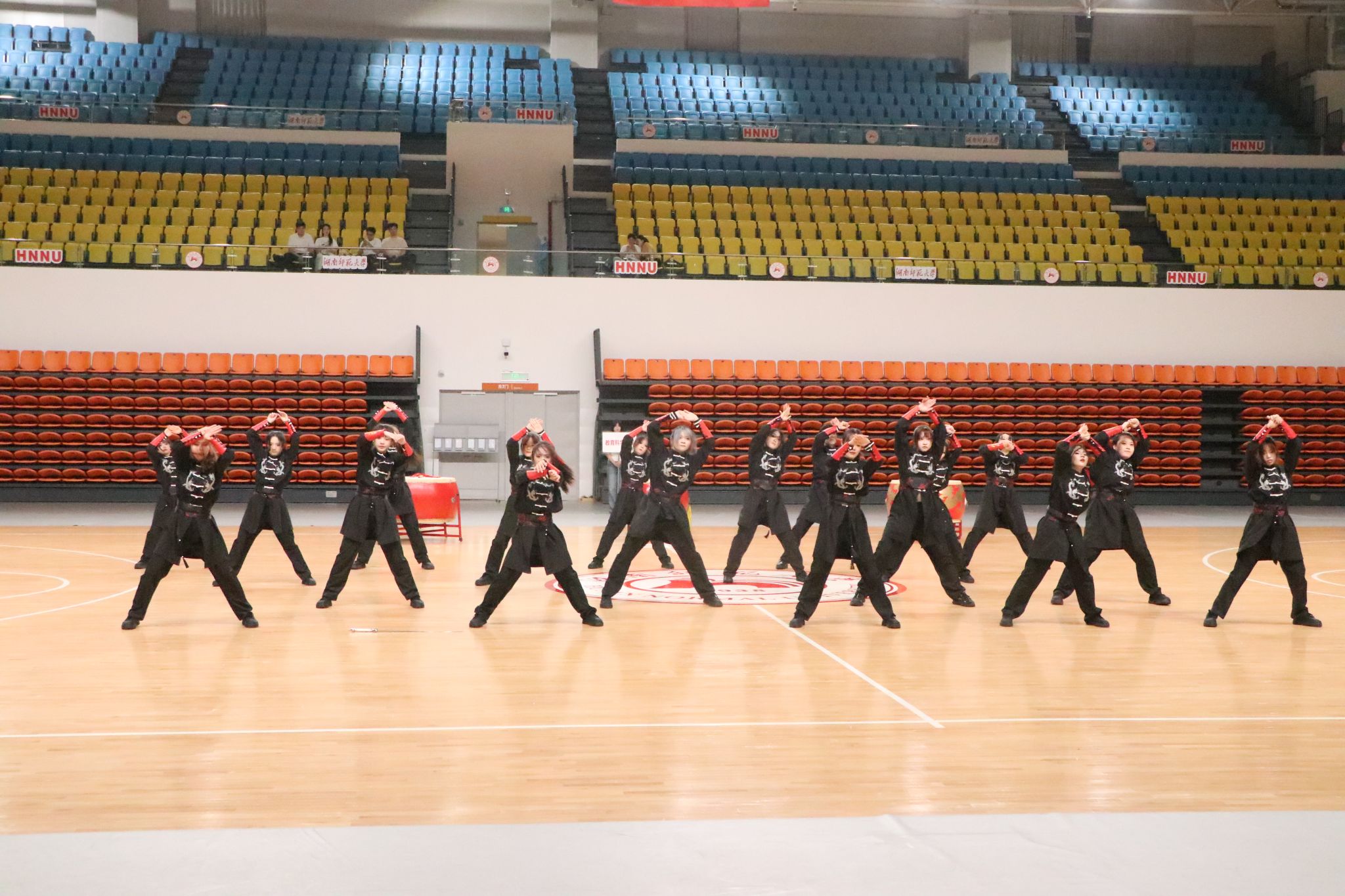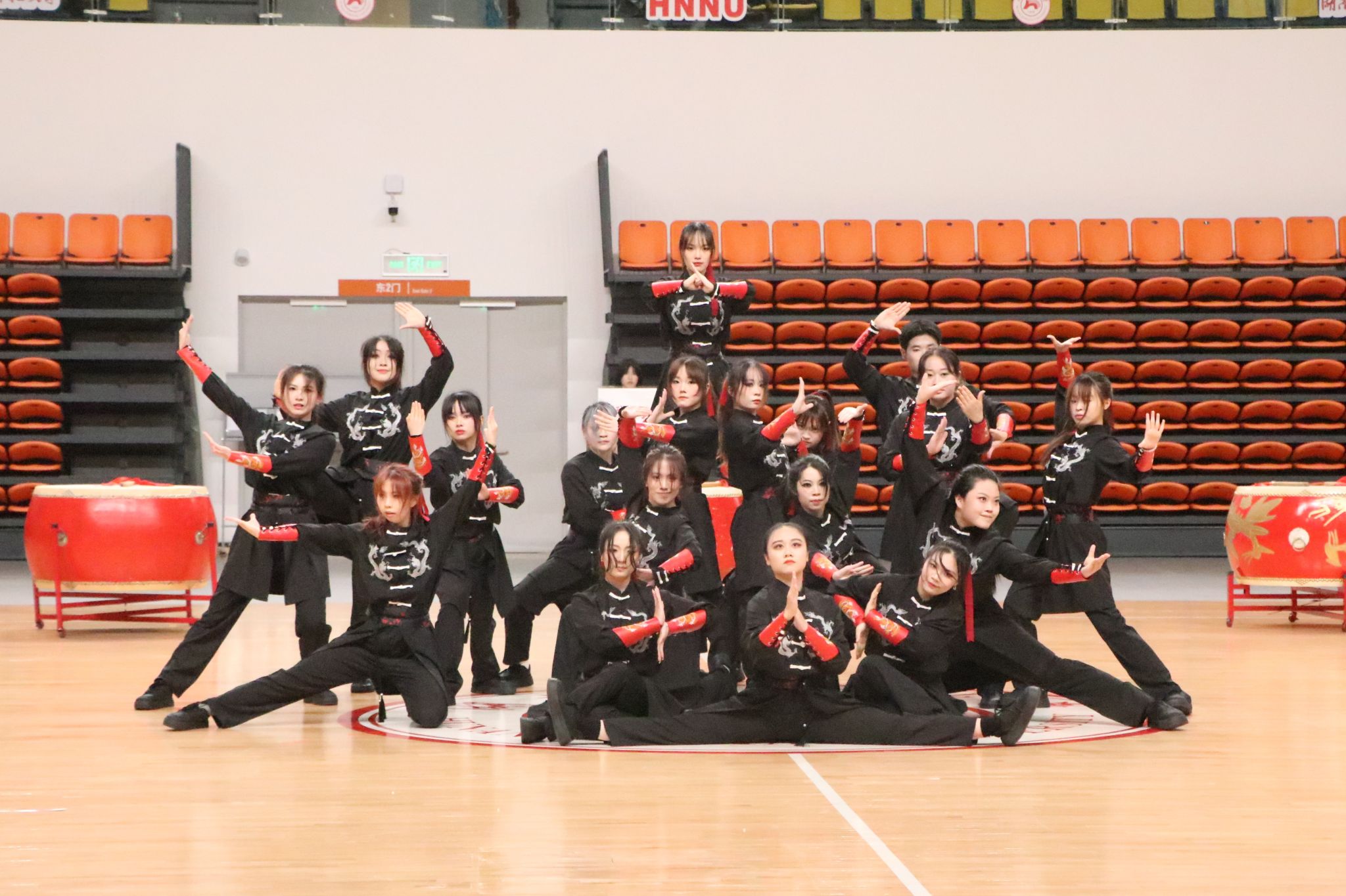 比赛现场,参赛队员依次完成了伸展、跳跃及旋转等技术动作,完成度较高。此外,团队在表演过程中展现出了良好的协同性,现场观众多次报以热烈掌声。教科院代表队自备赛周期启动以来,每周六固定开展集中训练,单次训练时长保持在2小时以上。训练内容涵盖基础动作规范、队形变换配合等核心环节。在动作编排方面,教练员易可人、队长檀佳雯多次与队员沟通、排练细节,并对多套队形变幻方案进行比选优化,最终确定以非对称队形为主体的表演架构。