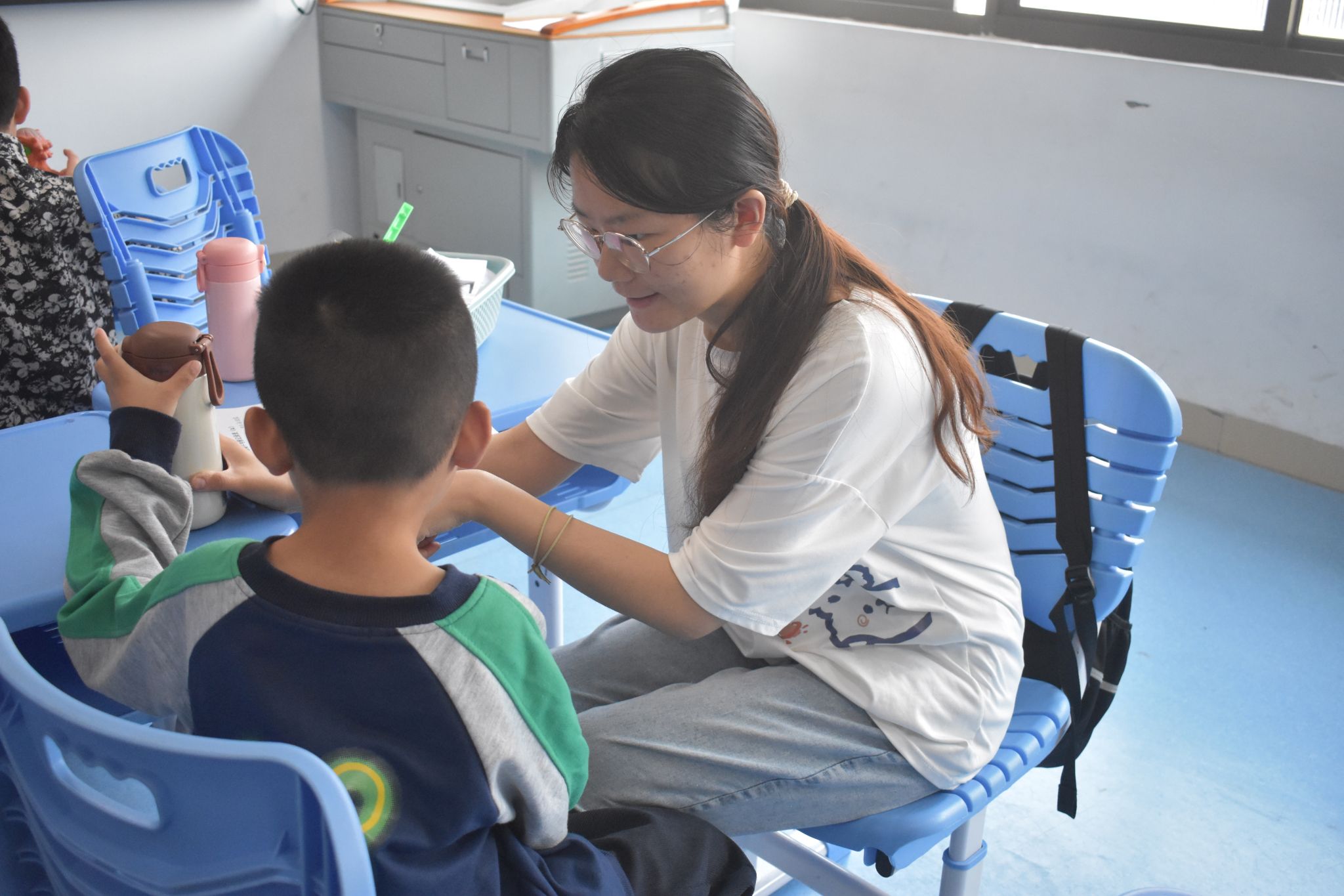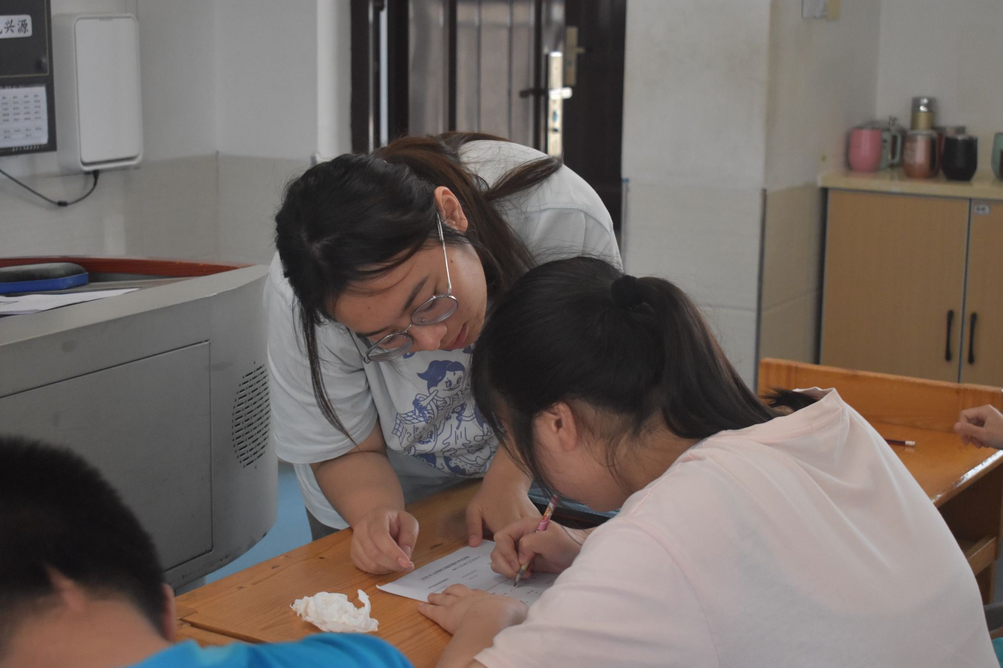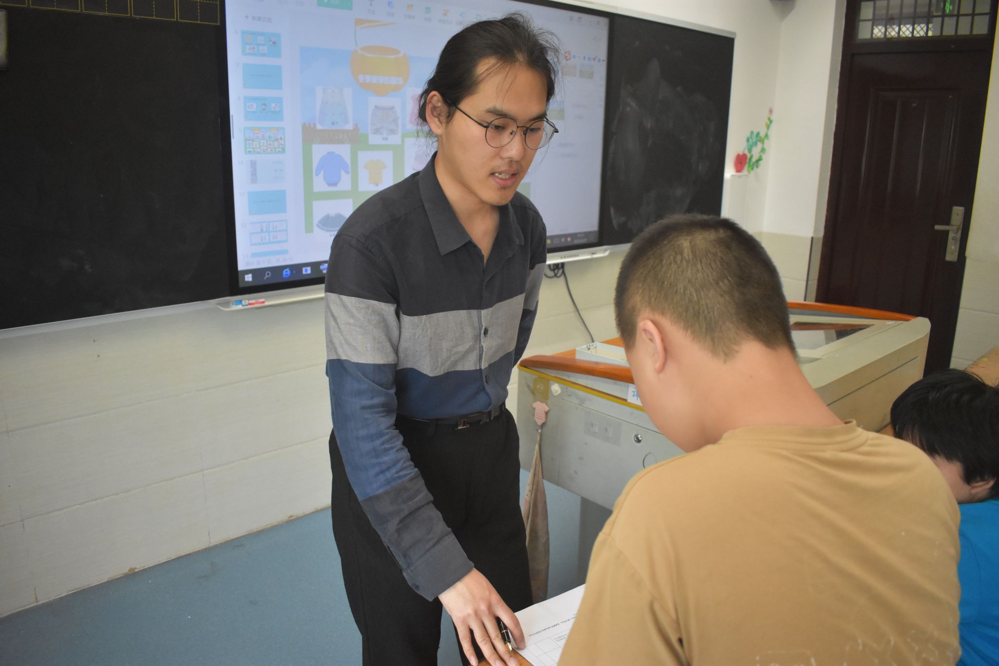 实习队队员们通过实际行动,深入了解员工,加深对特殊教育的理解和认识。在单人单考的班级,实习队队员耐心陪伴每一位员工。读题时,用简单清晰的语言,确保员工理解题意;员工答题速度慢,队员们便安静等待,适时给予鼓励。在统一发卷考试的班级中,实习队队员则时刻留意员工状态,一旦发现员工情绪波动,便及时安抚,帮助其调整状态专注答题。