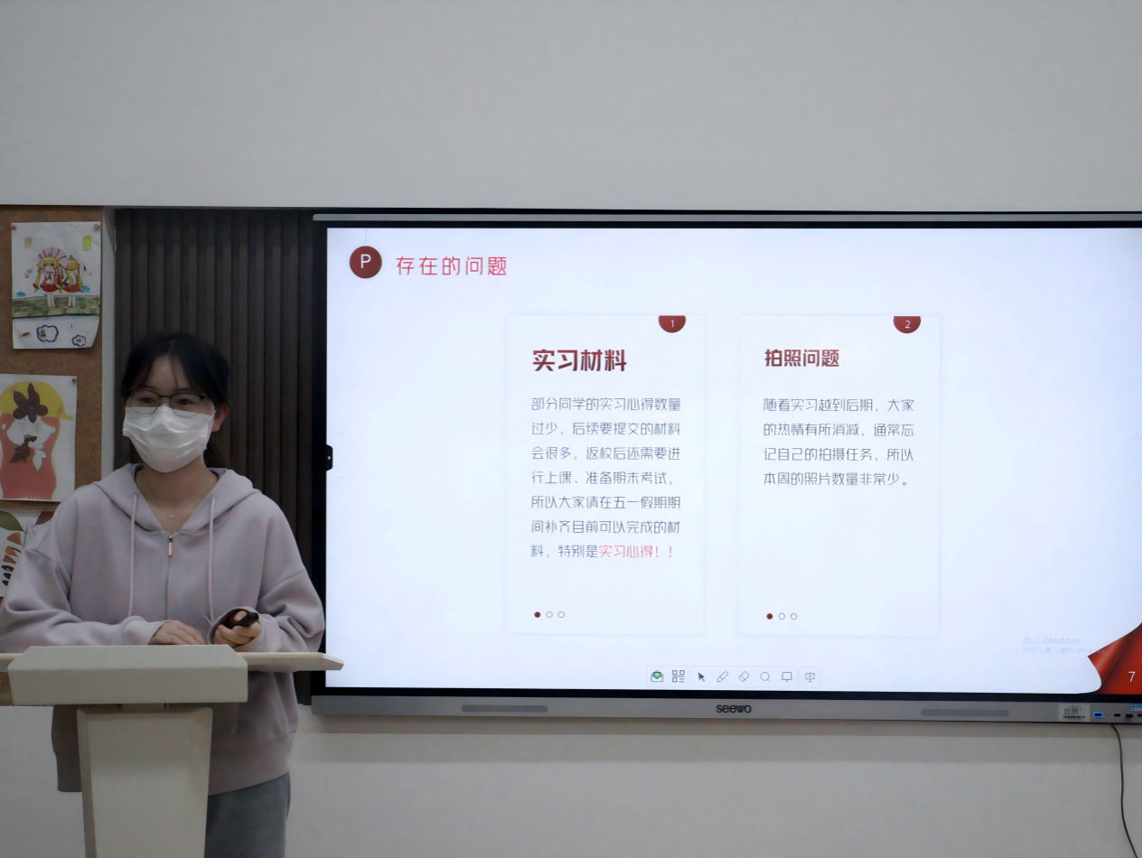 此外,彭明月还对接下来的工作进行了详细安排,包括确定了公开课的人选与主题,为实习队的中期宣传视频剪辑工作做出了具体安排。她特别提醒队员,五一假期要注意安全、按时返校。
