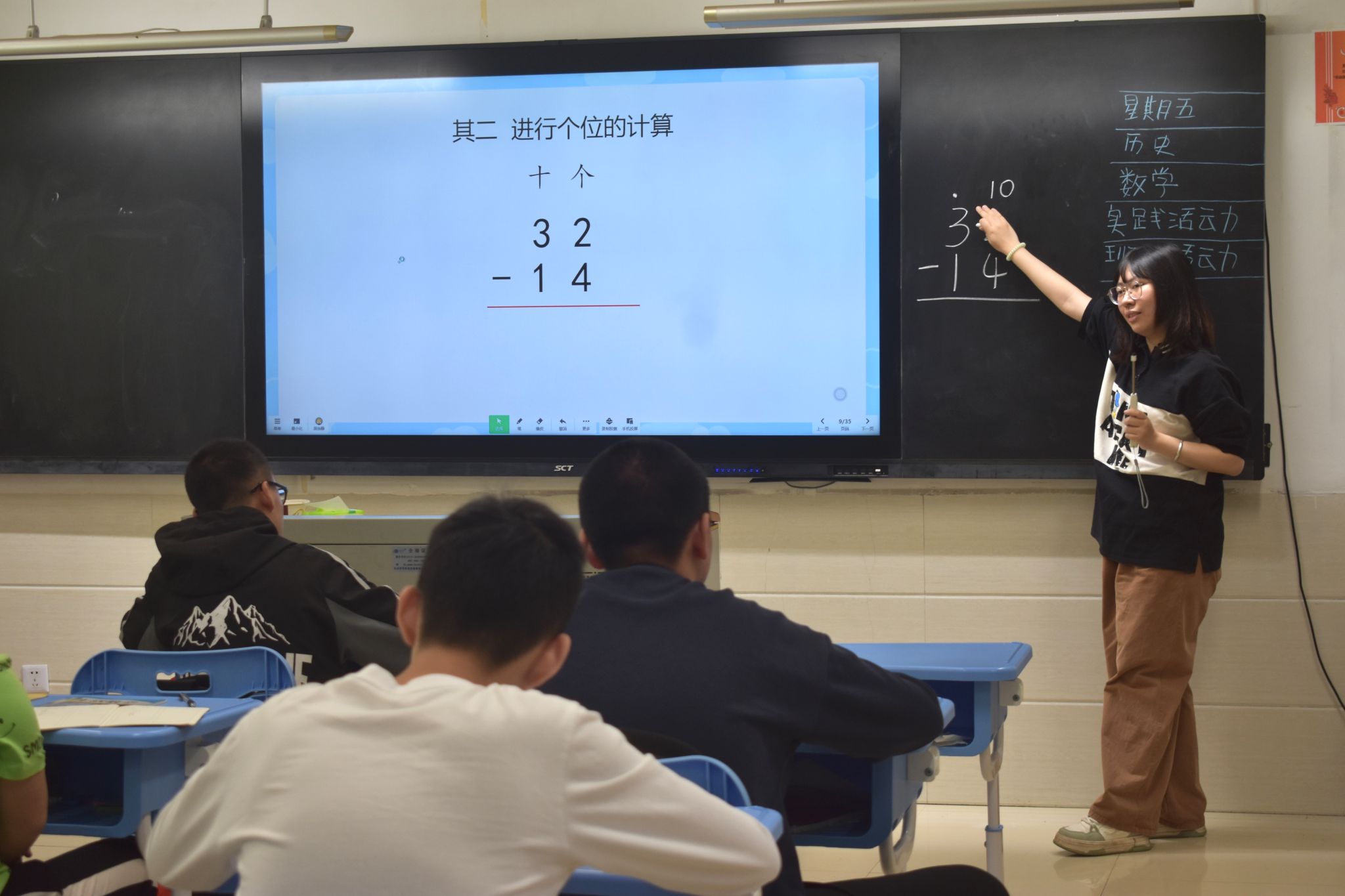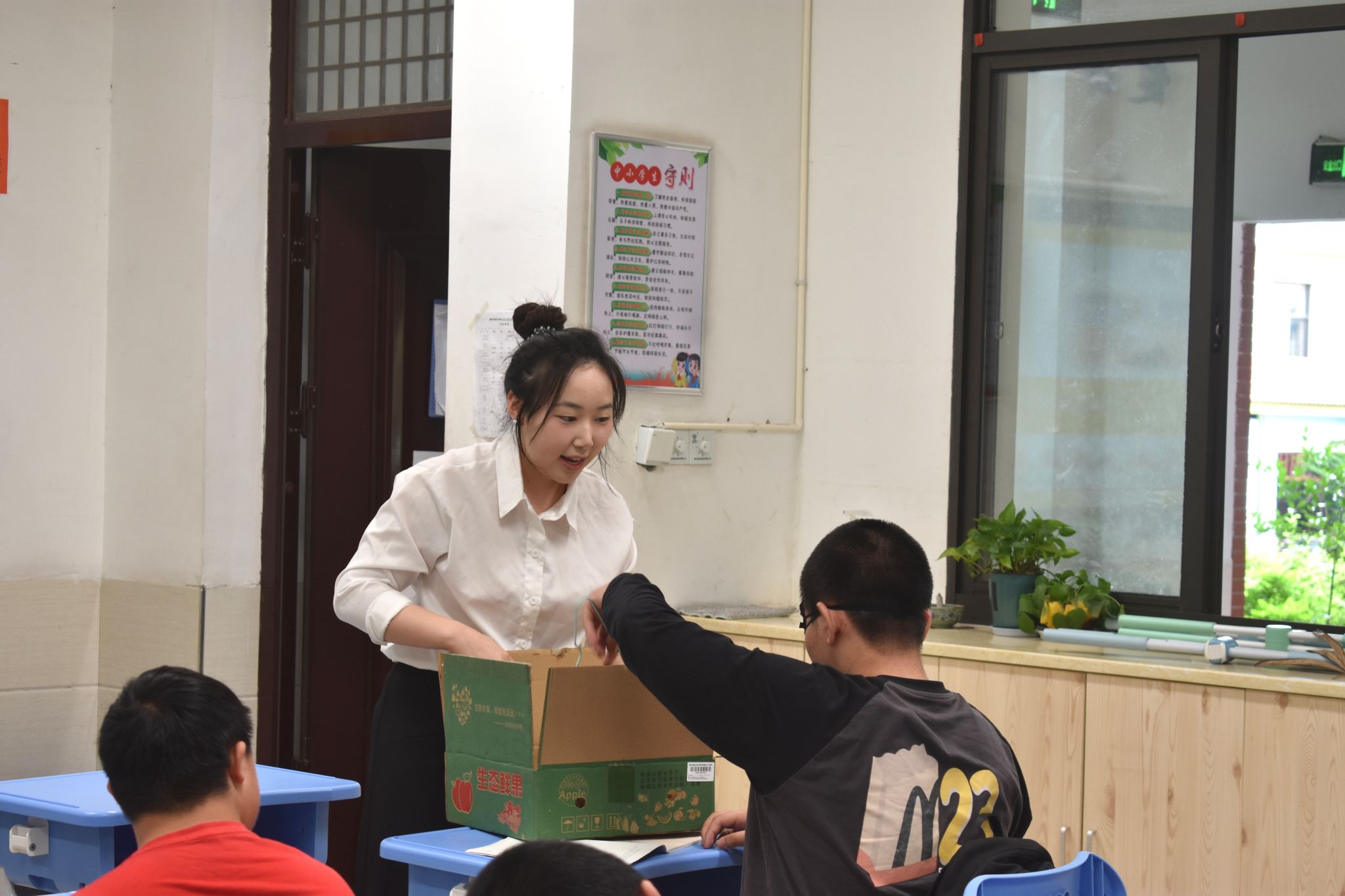 比赛现场,实习生蒋晓旸运用感官教学法,引导员工通过视觉、听觉与触觉感知事物,课堂氛围活跃,员工参与度高;实习生李至德运用讲述法,生动阐释文字起源,帮助员工理解汉字由来,取得良好教学效果;实习生吴怡静在生活数学课堂上耐心细致,针对员工疑惑之处反复讲解,帮助员工更好理解计算方法。全体实习生依据特殊员工的身心特点,精心设计教学方案,从生动有趣的课堂导入,到循序渐进的知识讲解,再到多样化的互动环节,充分展现了扎实的专业素养和创新的教学思维。