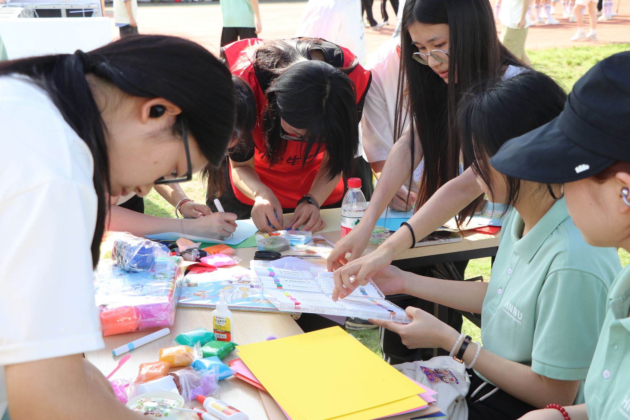 开幕式上,教科院“同心织梦队”以一段温馨的心理情景剧开场,随后全体队员以整齐划一的手势舞传递积极向上的力量,最后高呼“同心聚力,织梦教科”的口号,赢得现场阵阵掌声,凭借创意编排与默契配合,在风采展中取得第三名的好成绩,并且在整个活动中荣获了“团体三等奖”这一奖项,展现了教科院学子的青春风采。 随后的心理游园会设置了三大主题体验区,十二项趣味活动,参与者通过互动游戏集章打卡,兑换精美奖品,在轻松氛围中学习心理健康知识。教科院立足心理学专业特色,在游园会中策划了“情绪拼贴工坊”特色互动摊位。活动以“每种感受都值得被看见”为核心理念,参与者通过拼贴情绪符号、绘制色彩图谱等,将过往经历、当下心境与未来期许转化为艺术表达,现场创作出充满张力的情绪拼贴作品。