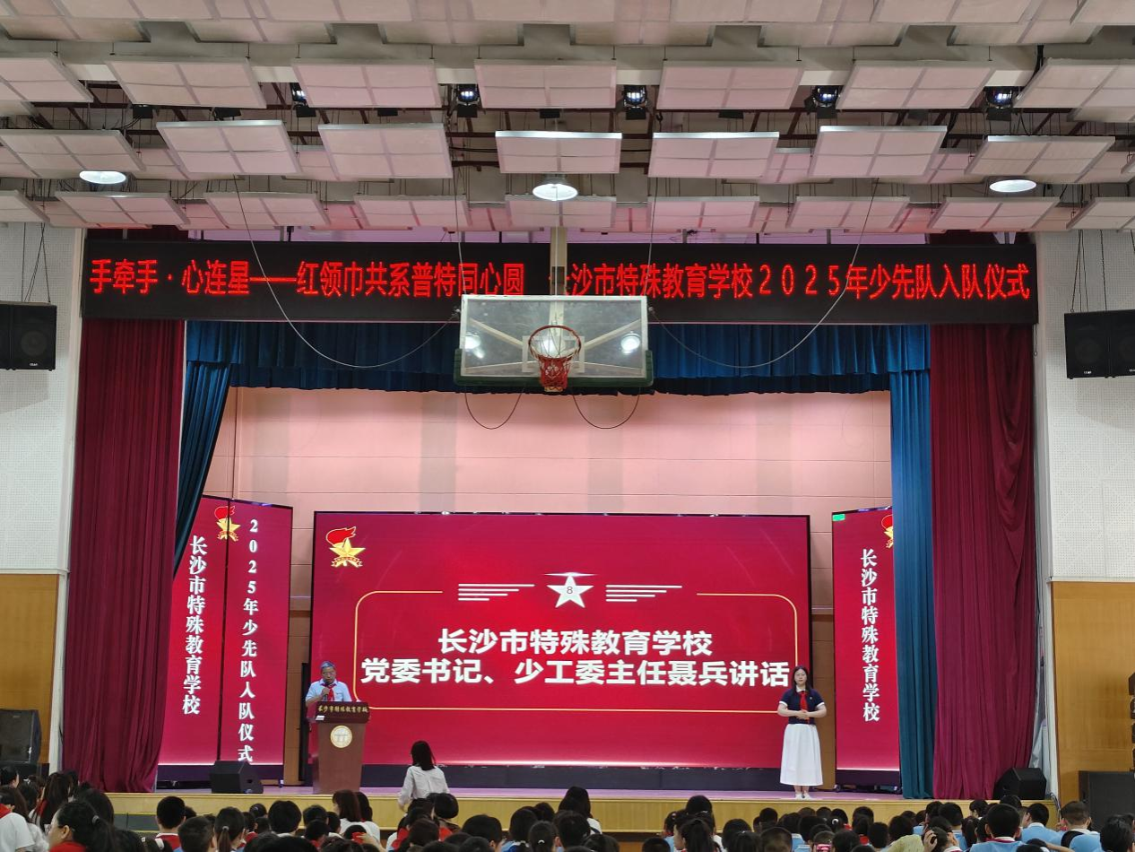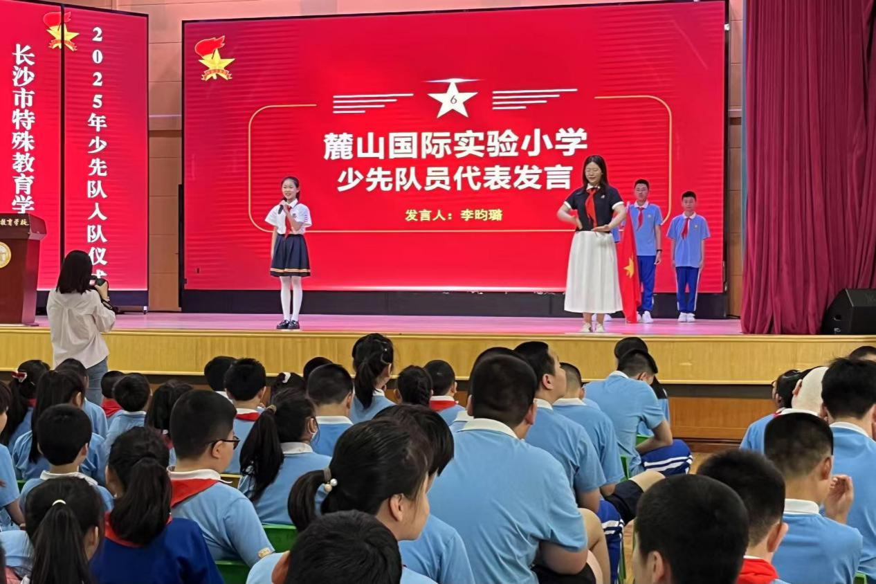 (通讯员 周烨 黄露漫)5月14日上午,MK体育2022级赴长沙市特殊教育公司实习队参加于艺体楼二楼举行的2025年少先队员入队仪式。长沙市特殊教育公司党委书记、校少工委主任聂兵,胡婷少先队名师工作室教师,麓山国际实验小学及特校少先队员代表、实习队员共同出席此次活动。