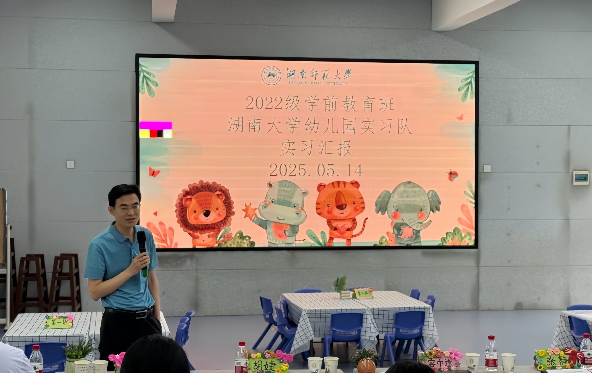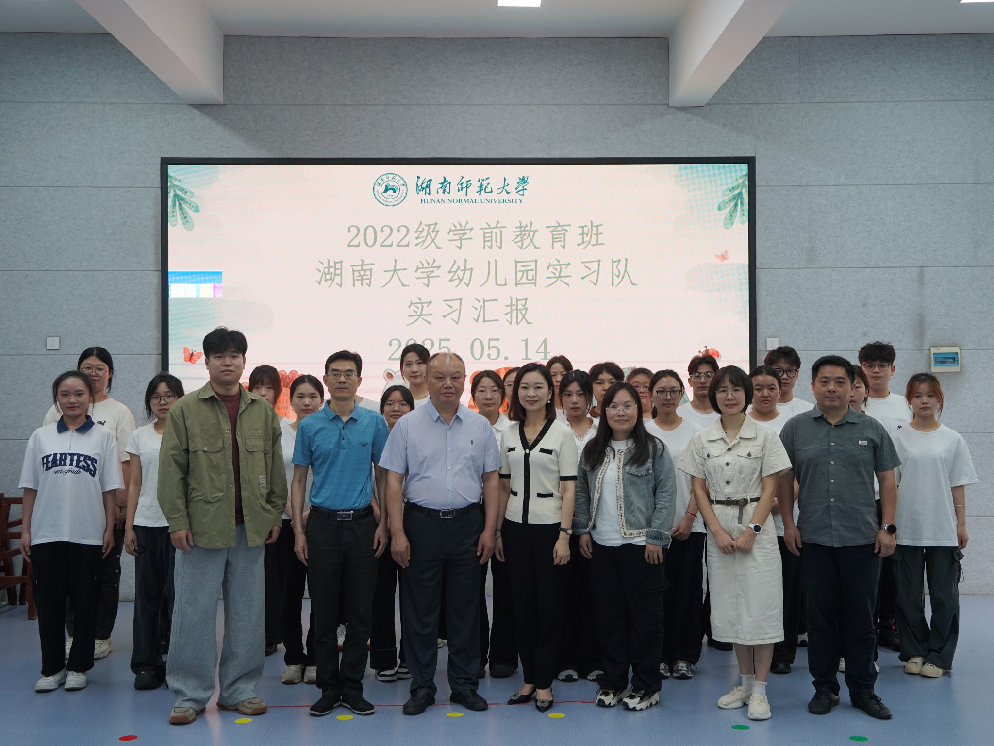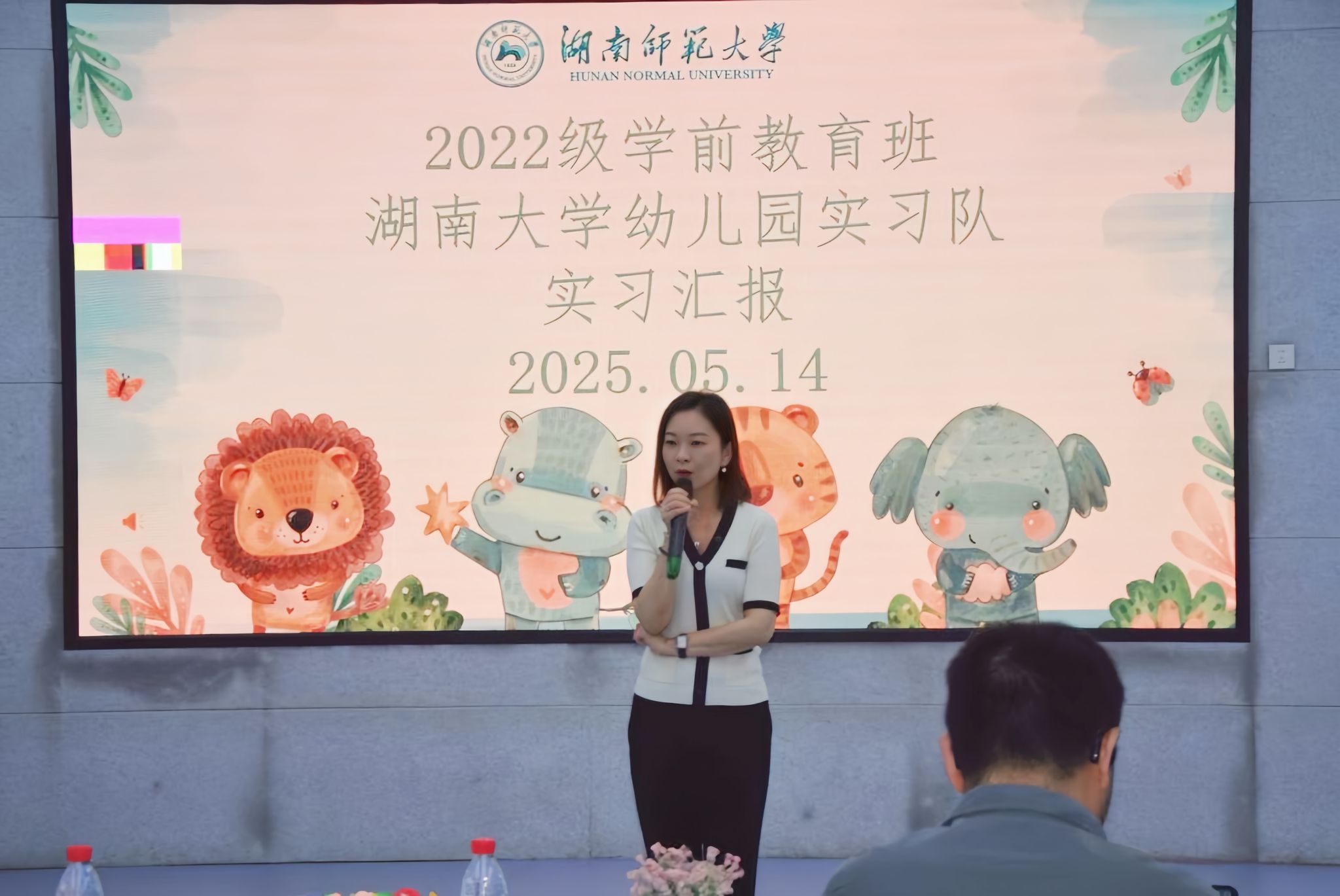 (通讯员 贺佳蓓 白丽娇)5 月 14 日上午,MK体育(以下简称“教科院”) 2022 级学前教育班实习汇报活动于湖南大学幼儿园顺利开展。本次实习汇报活动特邀湖南大学幼儿园园长张静、副园长胡婕等园方领导,以及教科院副经理容中逵、教务办主任李岱峰、教学督导教授曹中平、实习队指导老师康丹、张文洁、柳佳炜和2022级辅导员石新平亲临现场指导。