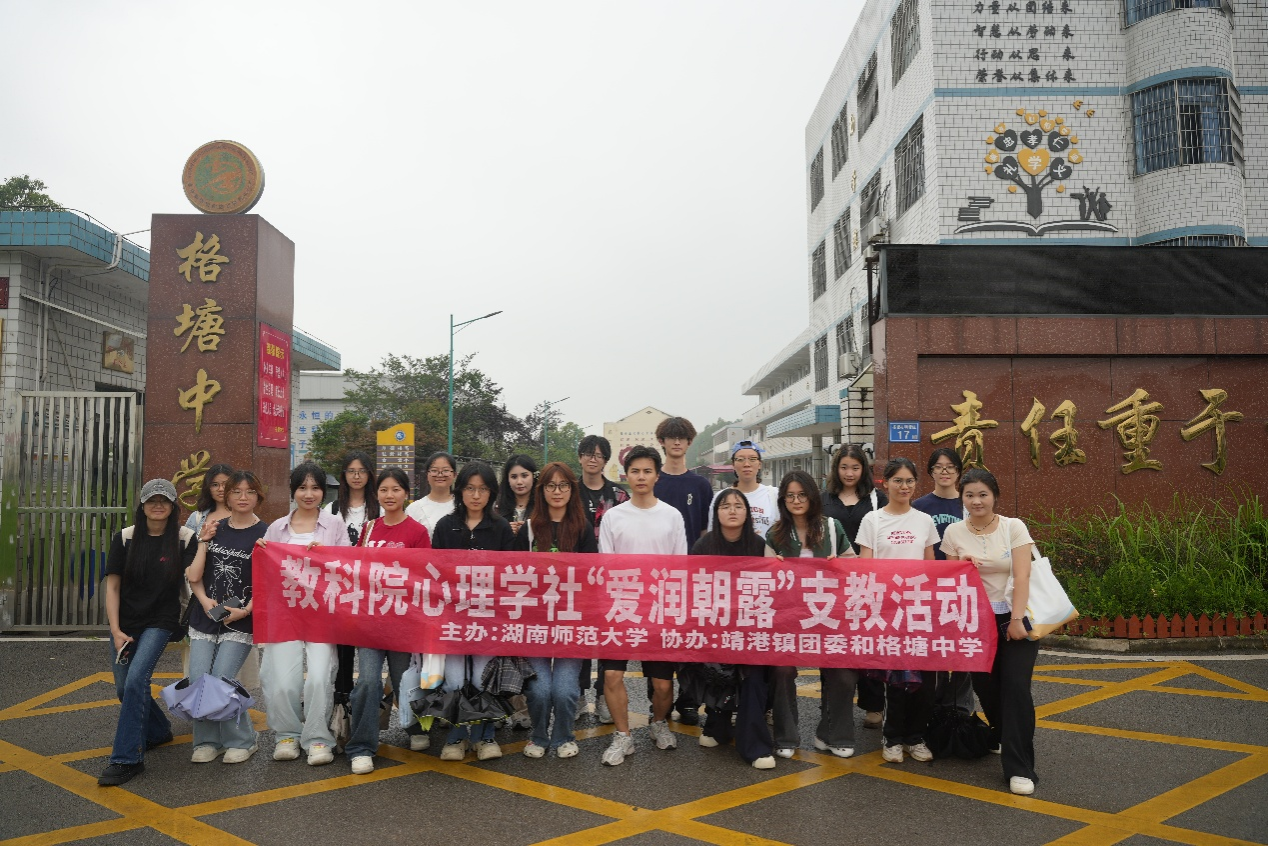 (通讯员 谢昊楠 罗艺馨)5月28日下午,MK体育(以下简称“教科院”)心理学社的20名志愿者前往长沙市望城区靖港镇格塘中学,以“五育并举,为心赋能”为主题,开展团体心理辅导活动动,格塘中学董事长刘友、教务主任粟蒙凯接待了志愿者队伍,心理学社负责人黄桢琳组织此次活动。