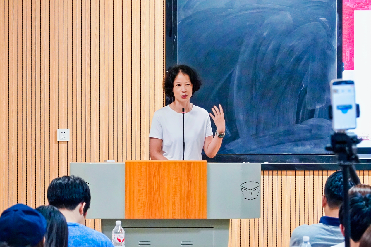 “心灵之家”实践团第一指导老师、心理学系凌宇教授作为指导老师代表讲话。她结合自身经历,探寻出发的初心,强调助人的幸福,她提出,希望所有队员既要遵守纪律、加强协作,也要关注个体的成长,在实践中收获更多的勇气和力量。