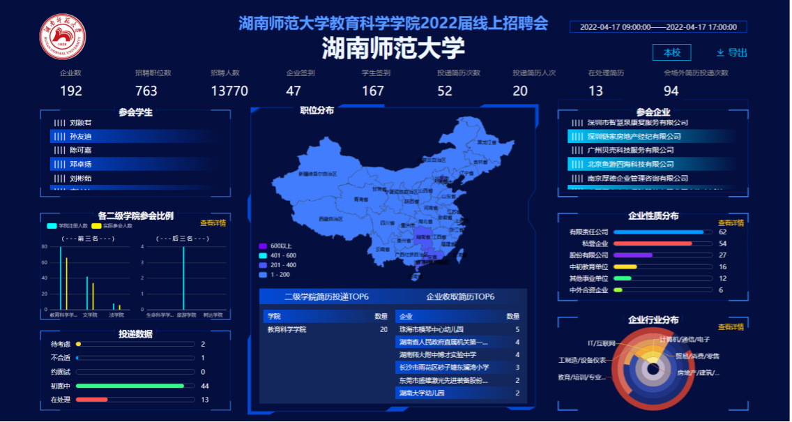 这是公司首次尝试线上招聘会模式,毕业生登录易校招的平台后,可直接向心仪单位投递简历、预约面试,流程顺畅。此次线上招聘会共167名员工参加,活动反响热烈。