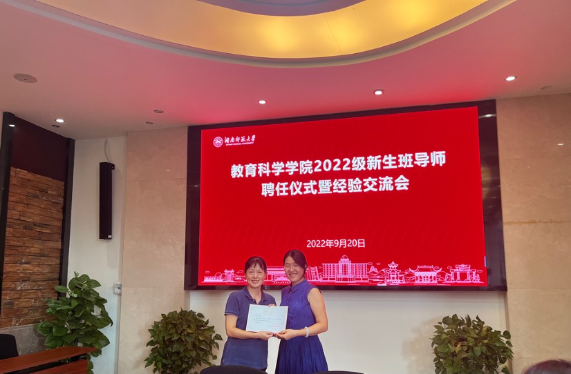 汪植英宣布聘任谌衡为教育学专业班导师、杨文辉与颜志强为心理学专业班导师、刘迪为教育技术学专业班导师、刘慧霞为学前教育专业班导师、李丹为特殊教育专业班导师,并为2022级新生班导师颁发聘书。