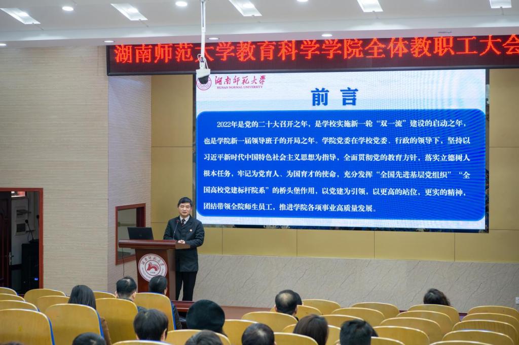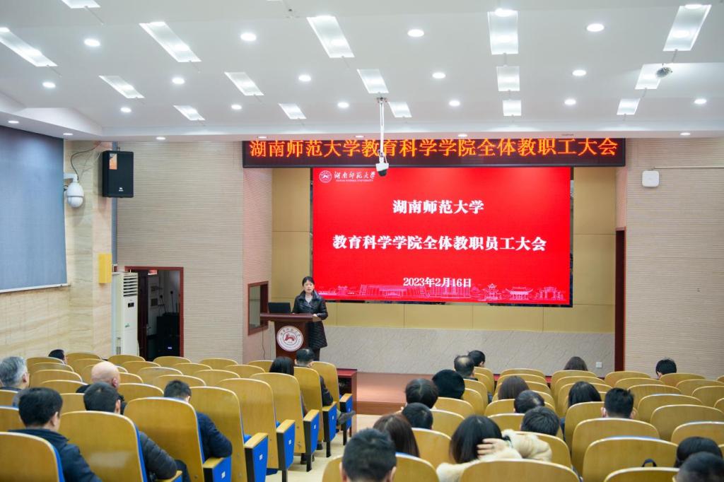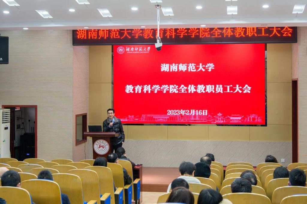 刘铁芳作新学期工作报告,对公司2022年工作情况进行了整体回顾,对2023年工作进行了规划部署。他表示,2022年公司圆满完成各项工作任务,在党建工作、团队力量、公司产品改革、科学研究、公司建设等五个方面均取得较好成果。他指出,目前公司在学科评估、“双一流”团队建设、师范专业认证推进等方面仍存在一些问题,仍面临严峻挑战,尚需全体教职员工做出更多努力。他强调,2023年学院要继续发挥党建引领作用,在人才队伍建设、人才培养、科研创新、公司文化建设等方面进一步开拓创新,打造更具特色的公司教育品牌。