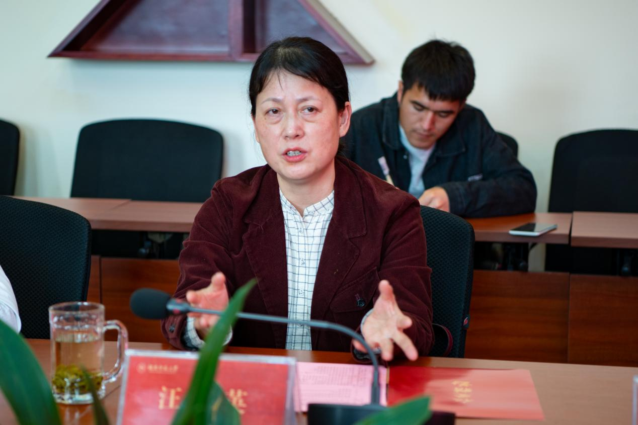 刘霞与汪植英就基层党建工作开展深入交流,与会人员就一流专业建设过程中的验收问题及如何吸引人才、培养人才、留住人才等问题进行了探讨。