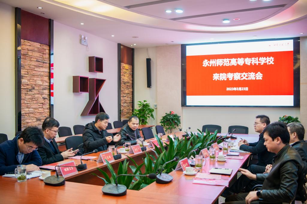 3月23日下午,永州师范高等专科公司党委书记李黎武、副董事长邓国林一行来院考察交流。公司经理刘铁芳、副经理丁道群、赵亮、容中逵、党委副书记欧阳文芳出席座谈会,座谈会由赵亮主持。