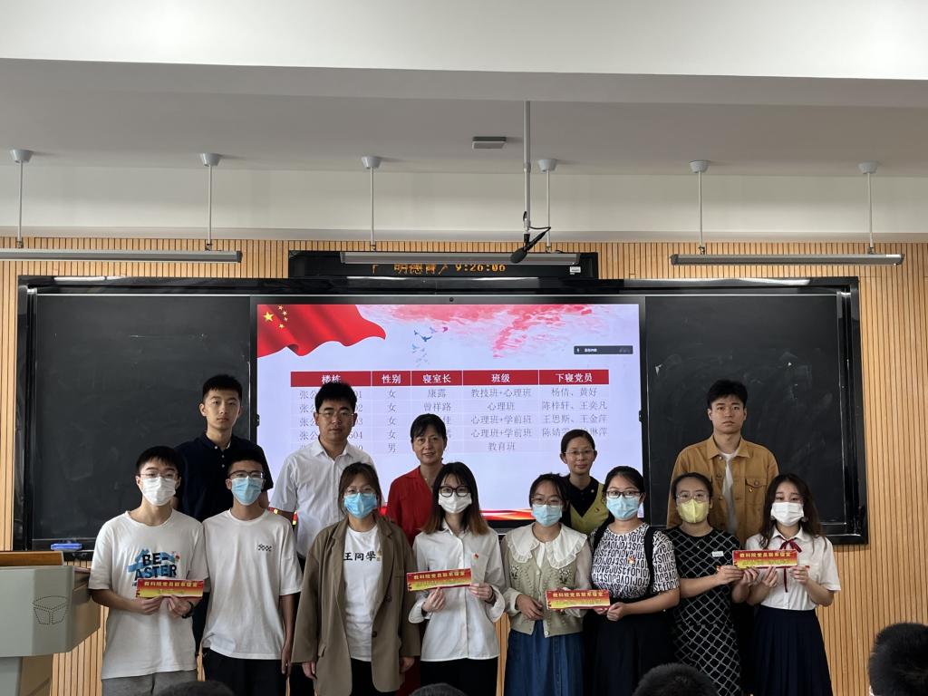 汪植英、欧阳文芳、王赛波为参与此次活动的党员和寝室授牌,并合影留念。