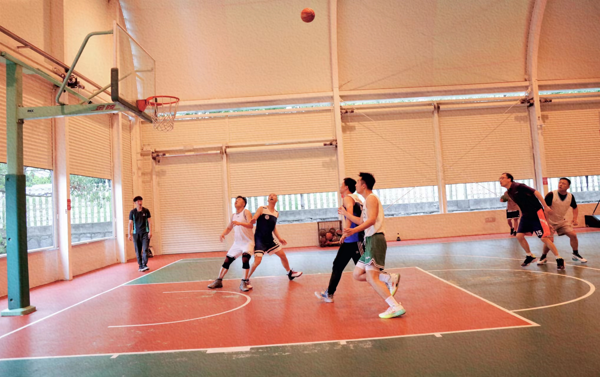 5月4日下午,公司教职工篮球队与商公司教职工篮球队在公司江边篷房球馆举行了一场3V3篮球友谊赛。校工会副主席杜汉文到现场指导,体育公司篮球国家级裁判员陈军担任裁判,商公司工会主席张治觉、副经理曹虹剑、副书记刘杰带队参赛,公司工会主席张卫民、副经理赵亮参加比赛,部分单位工会主席、文体委员现场观战。