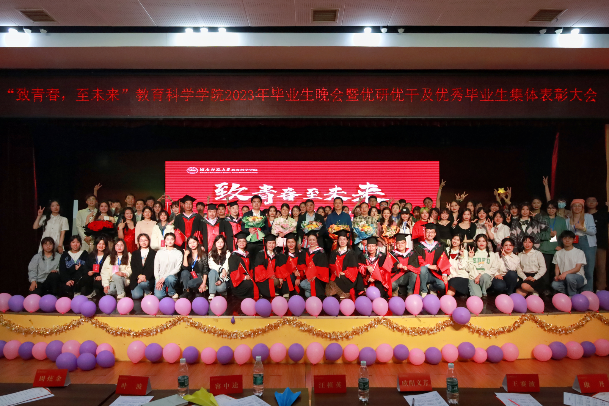 全体嘉宾与演职人员合影留念,至此,“致青春 至未来”MK体育2023年毕业生晚会暨优研优干及优秀毕业生集体表彰大会圆满落下帷幕。