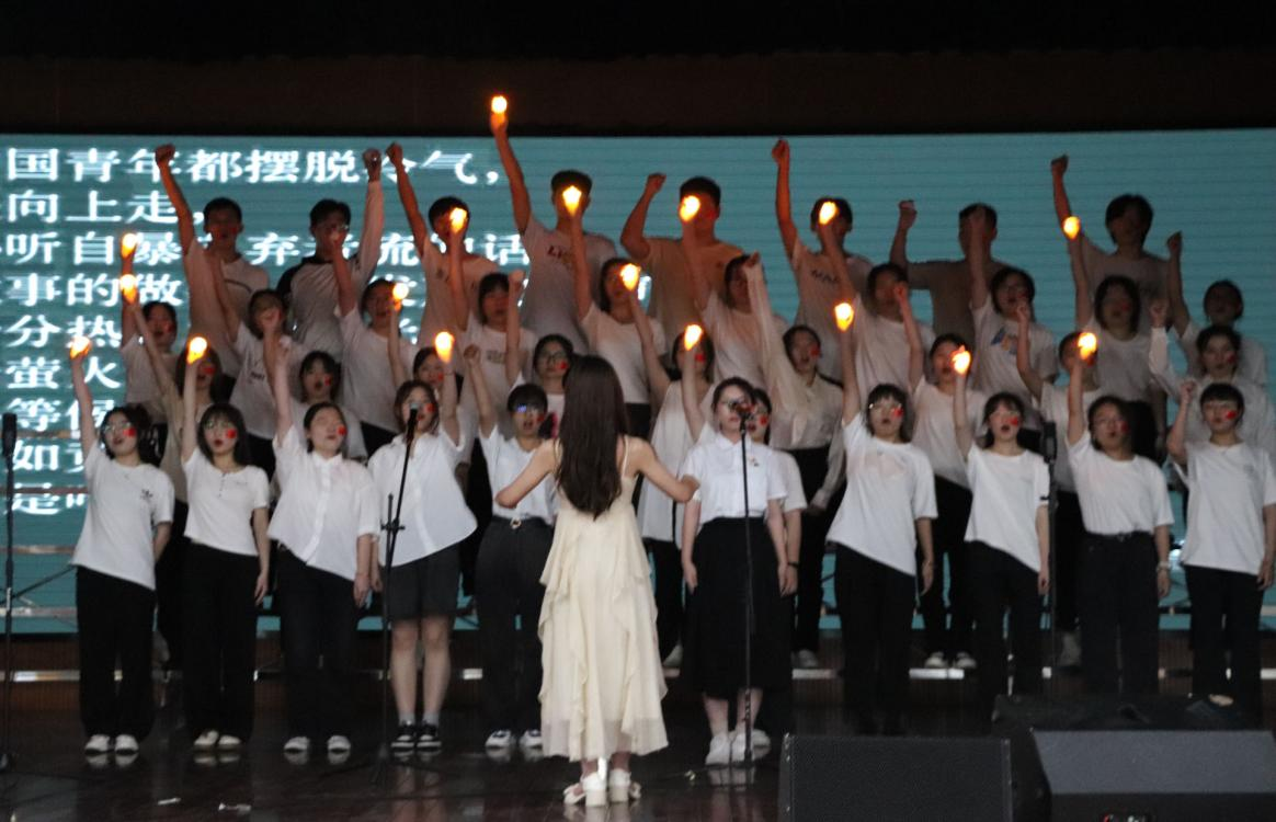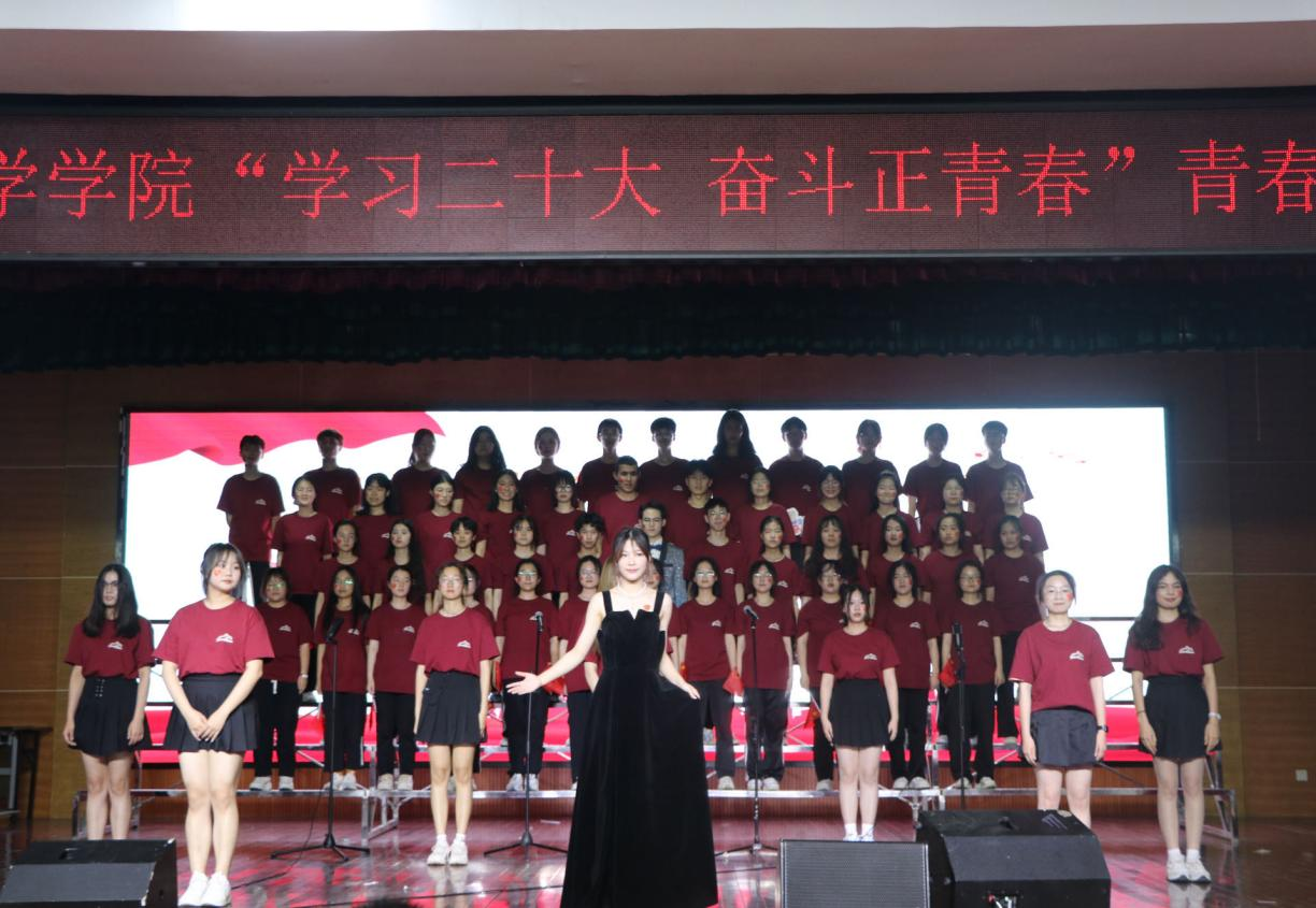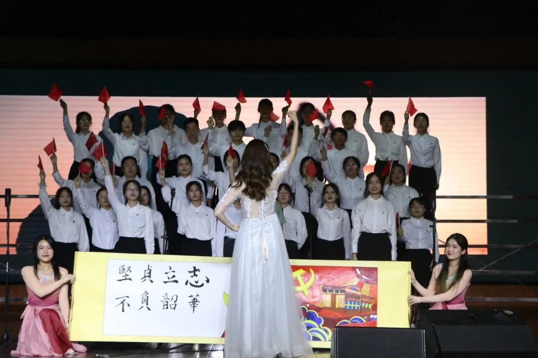 歌会共分为“百年峥嵘”“踔厉奋发”“青春献国”“展望未来”四个部分。歌会以22级教育技术班团支部合唱《国家》作为开场,他们有着最饱满的热情和充满激情的指挥,也用最动听的歌喉燃动了现场领导和嘉宾的情绪,给歌会开了一个好头;21级学前教育班团支部的一首《在灿烂的阳光下》,带领现场观众重温党带领人民取得的成就,他们用近乎完美的表现赢得了阵阵掌声,活动达到了一个高潮;第二部分由22级学前教育班团支部带来的《有我》引入,他们用歌声号召广大青年投身于实现中国梦的伟大征程,激发青春志气,鼓舞我们在奋斗中淬火、于奉献中闪光。第三部分由22级教育班团支部作为压轴出场,一首《我爱你中国》唱出新时代新青年歌颂祖国壮美河山的真挚情感,一首活泼的《新青年》唱出青春力量的意气风发,展现出青春学子的无限活力……各班结合自身特色,将多样形式融入合唱表演中,为现场教科学子呈现了一场红色歌曲盛宴。歌会第四部分,由公司两会两中心同学带来的特色节目既进行了团队风采展示,又带领全场合唱《光荣啊,中国共青团》,将晚会推向新的高潮。
