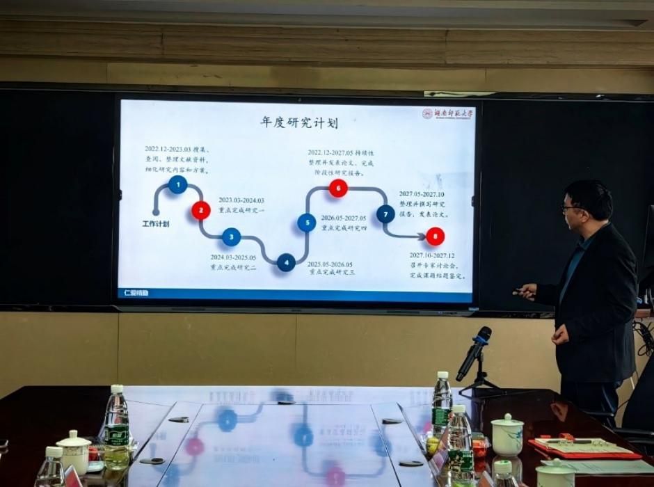 研究团队负责人范伟教授就研究团队的成员构成、课题分工、总体工作计划及研究进展等方面展开了详尽的介绍。他重点分享了团队前期的具体研究成果,在后期的工作内容和计划,并对团队预期标志性研究成果进行了积极展望。
