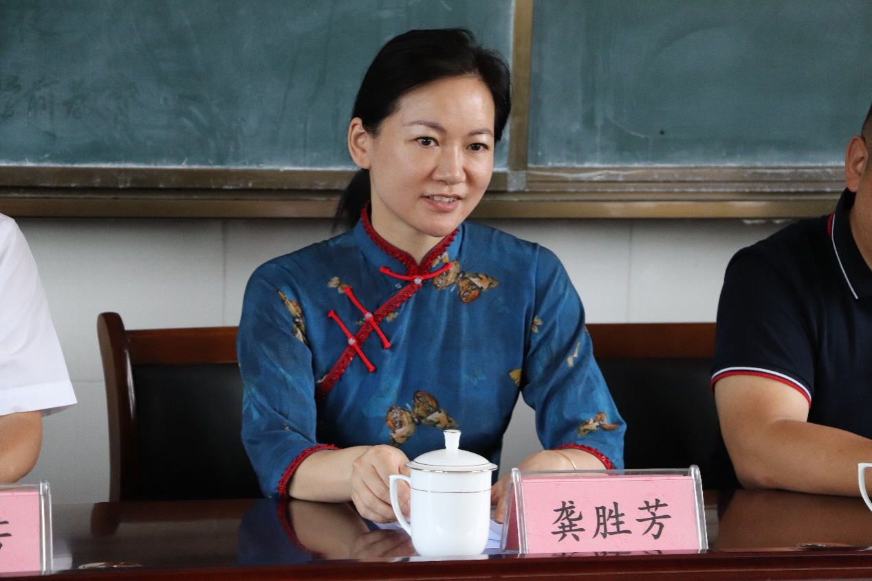 龚胜芳在讲话中介绍了桃江县的概况,特别是桃江的教育和文化事业发展状况。她指出,实践团成员的到来,如同一盏灯,能够引导乡镇中的员工看向更广阔的世界,也希望乌旗山中学的员工长大后也能心怀家乡、怀抱桑梓,为家乡的教育事业输送新鲜血液。