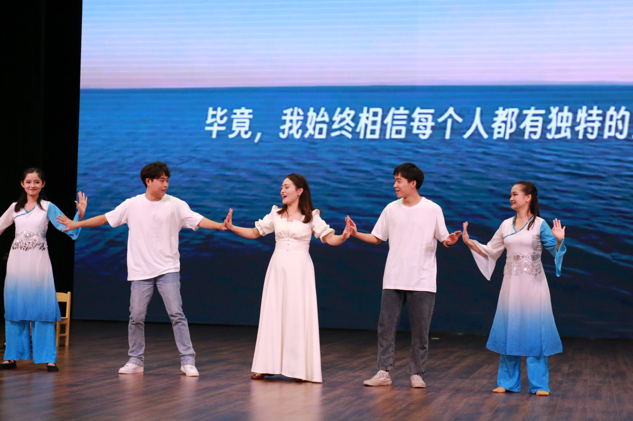学院师生带来开场节目。麓山扬帆,青春起航,用青春作画笔,以勤学开新篇,员工代表合唱《明天,你好》;潇湘大地逐风流,芙蓉国里竞朝晖,教育领导与管理博士生杨然钧二胡独奏《战马奔腾》;展望未来,心向云端,寻梦翱翔,公司学前教育系彭荣老师携学子表演歌曲《向云端》。
